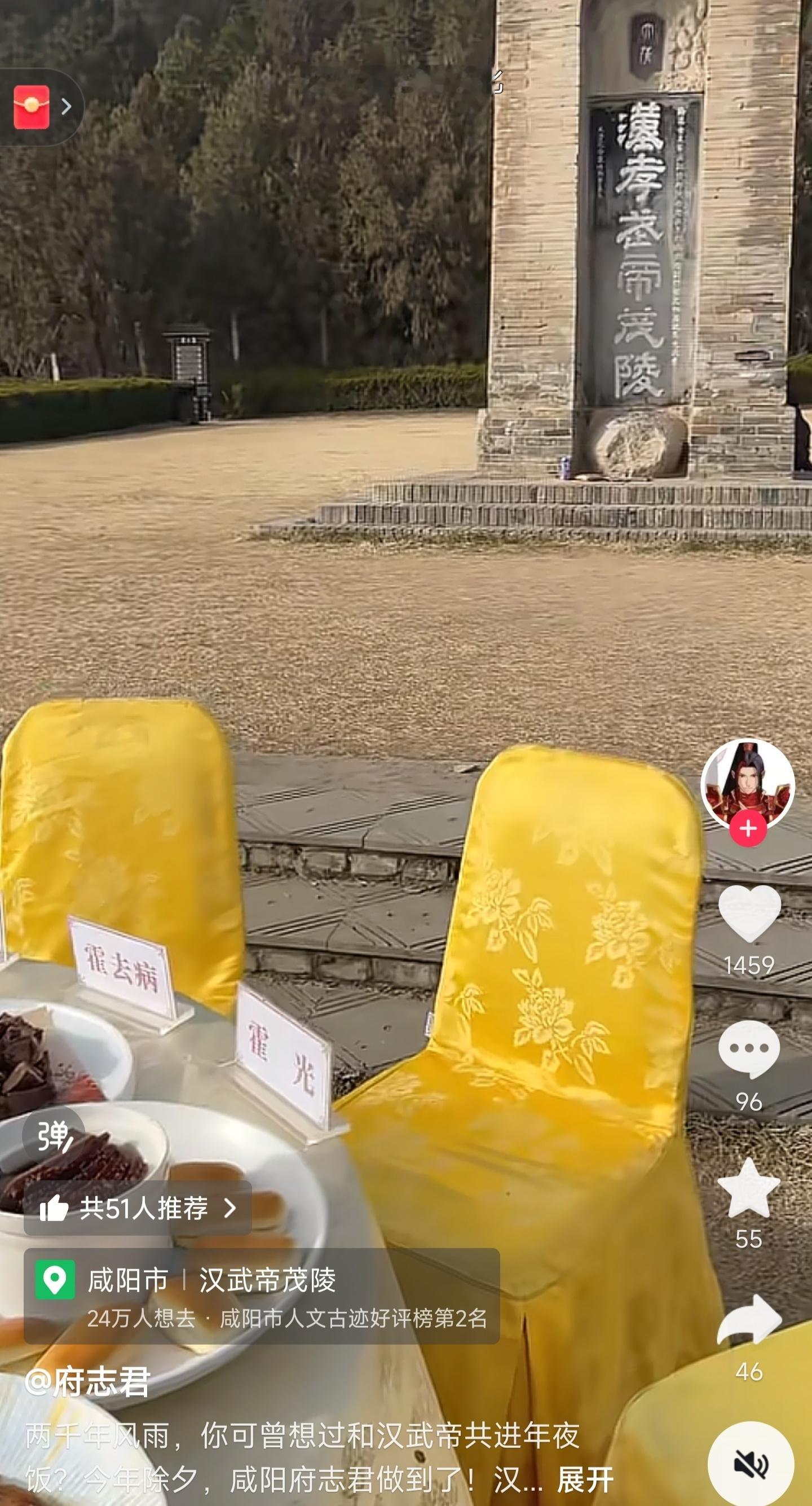 汉武帝、卫子夫、霍去病、霍光一起在汉武帝陵前坐席,另一个桌签应该是卫青。这要是茂