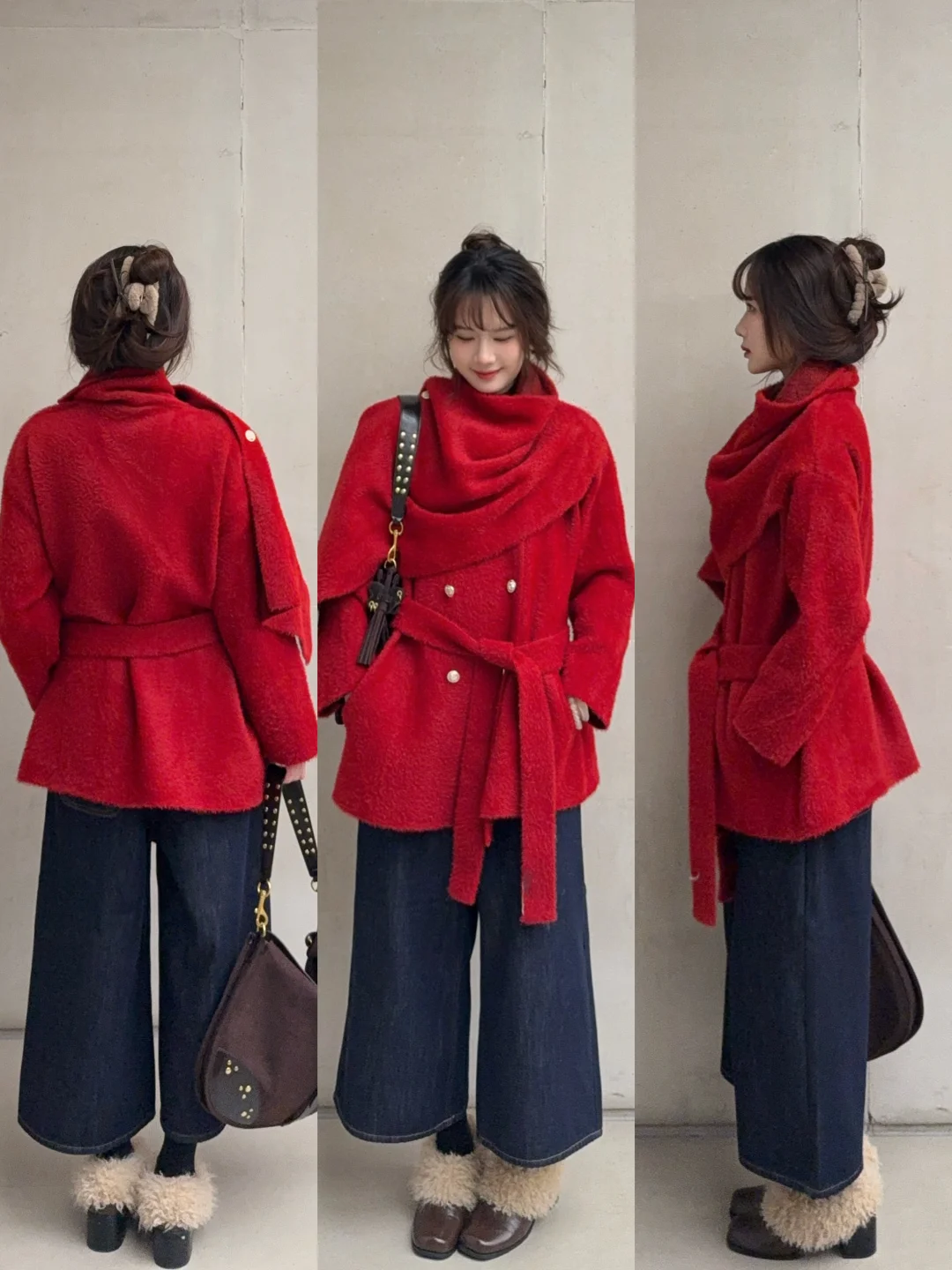 可以带点喜庆颜色的配饰 增添节日氛围~