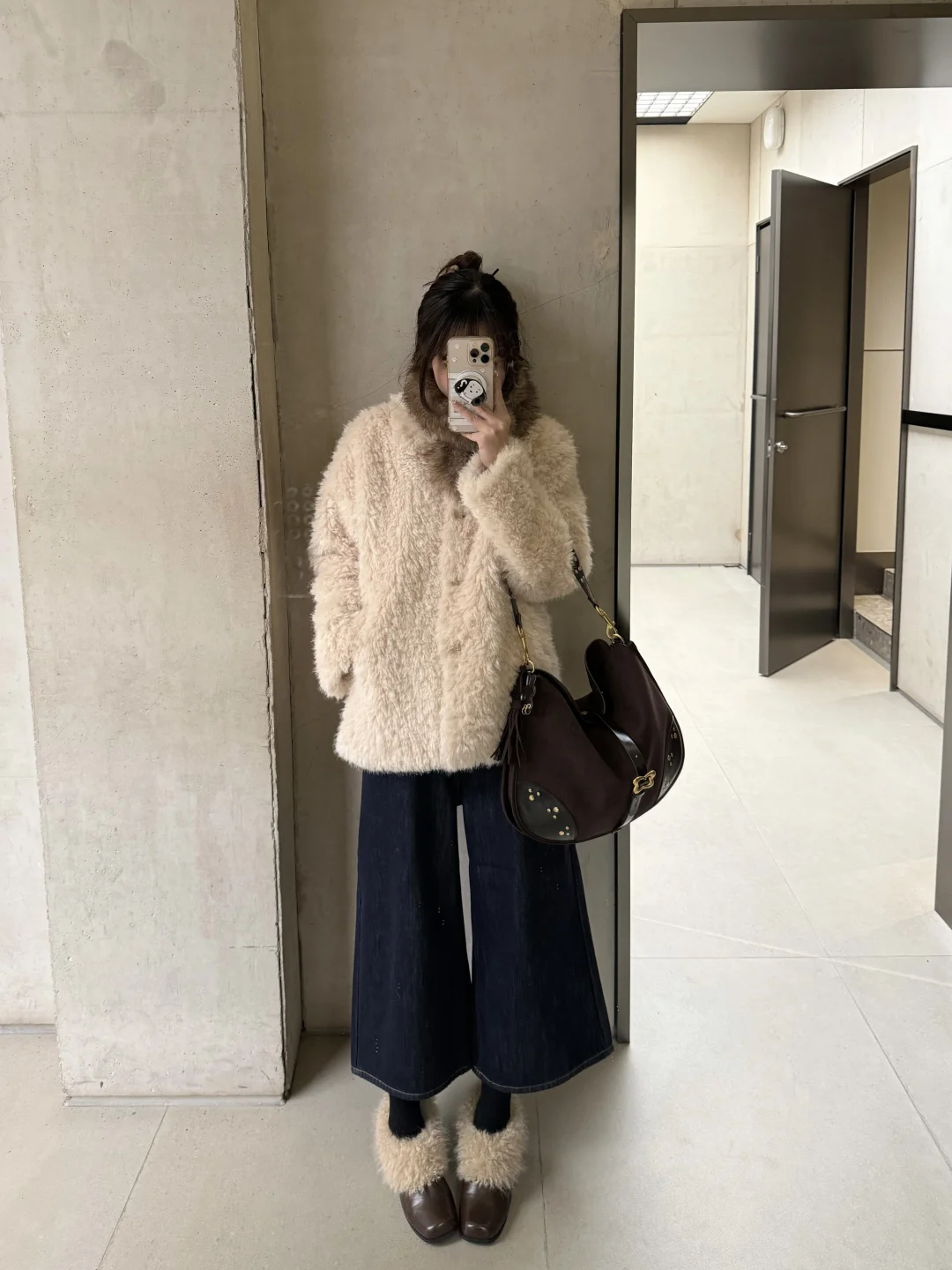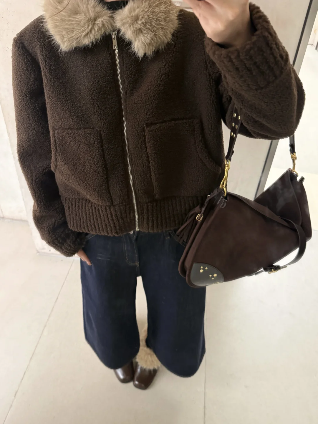 特别时尚有气质 我随意搭配了方头毛毛鞋