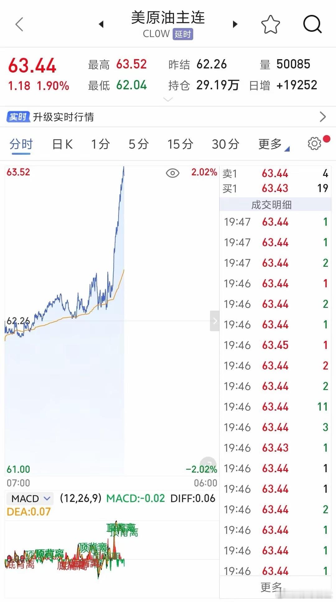 国际原油在18:30左右又开启了一波直线拉升,这波拉升与昨日12点的瞬时拉升有明显的不同。今日国际原油整体以震荡上行的方式缓慢消耗美伊17日在日内瓦谈判所带来的影响,到下午6:30左右开始强势拉升,使其价格重回63上方,基本收复了今日凌晨的跌幅。今晚的这波走势,使国际原油的技术面由横向调整极有可能演变成继续上涨模式!原油的强势由此可见一般:回调40日均线后能快速拉回,多头对其未来需求应该持乐观态度!这种表现实际上在有色金属贵金属板块上曾有所体现!当前世界各国围绕争夺的核心就是资源,随着AI技术的运用,对这类争夺更加白热化。既然黄金白银能涨上天,那对更为重要的能源会不会也会如此呢?从美国最近对委内瑞拉,伊朗等中东国家的不断出手可以看出,石油作为重要的战略资源,其重要性也就不言而喻了!