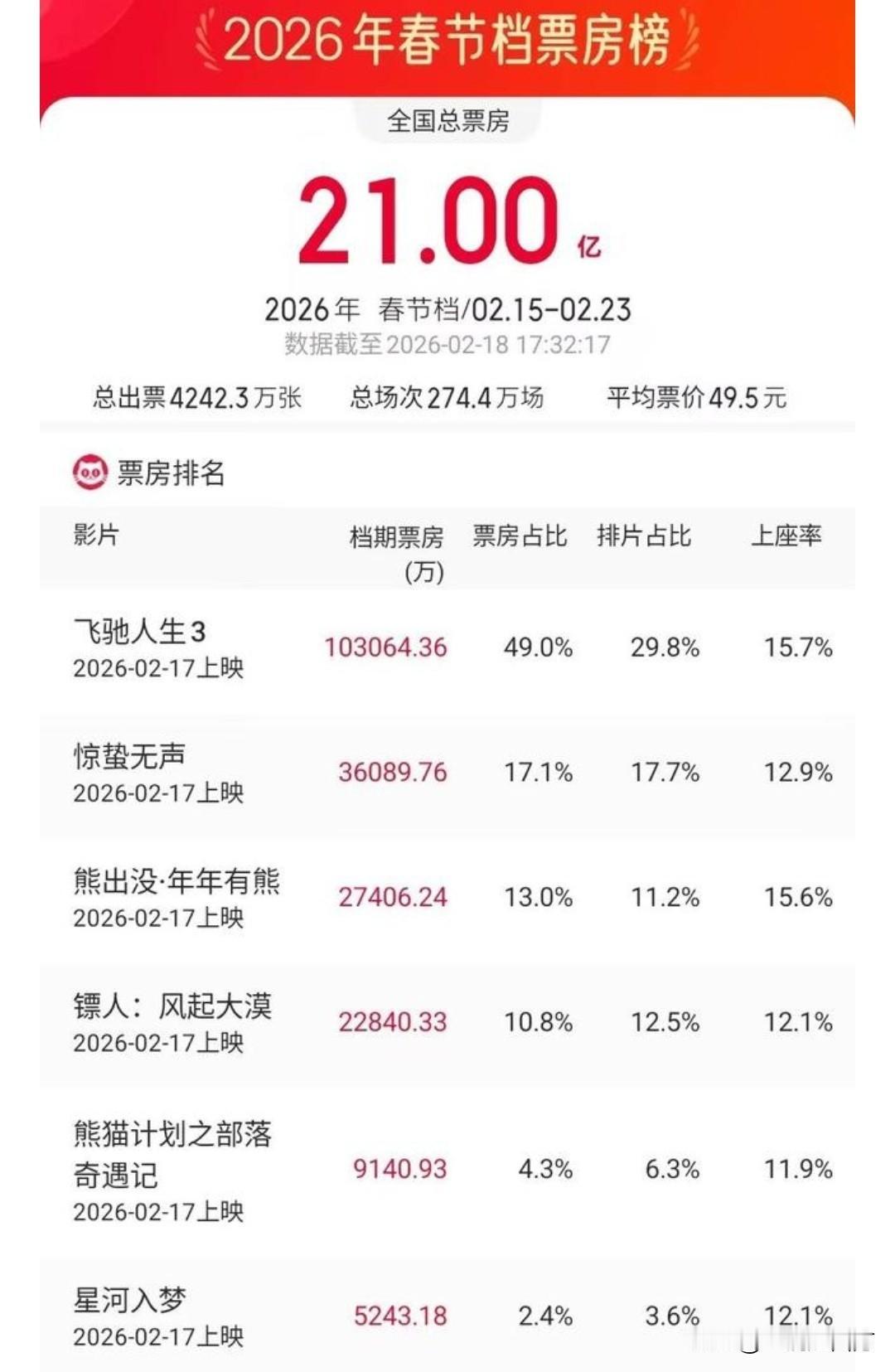 截止到今天18时18分,电影《飞驰人生3》总票房破10亿元,在春节档电影里一枝独