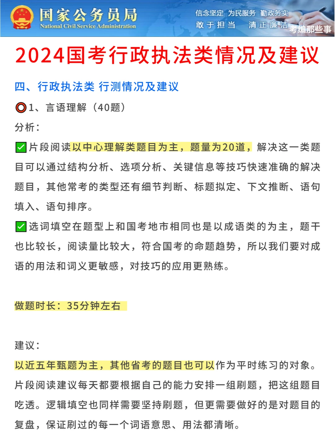 🔸行测的情况及建议?