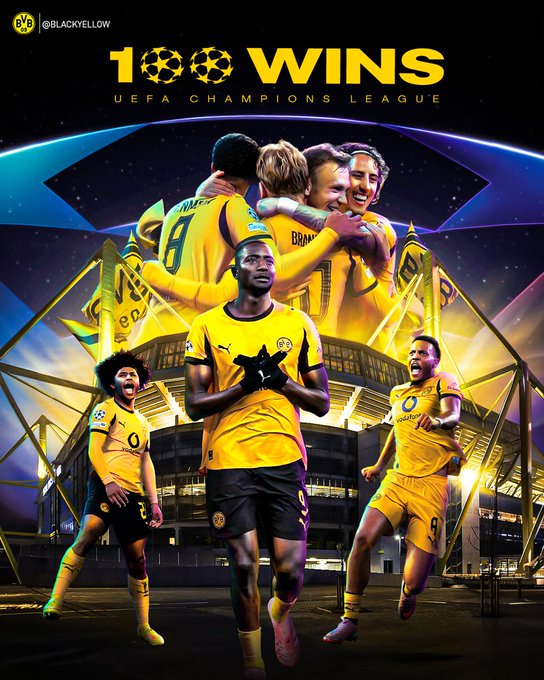 达成欧冠百胜里程碑,多特蒙德官方发布纪念海报
