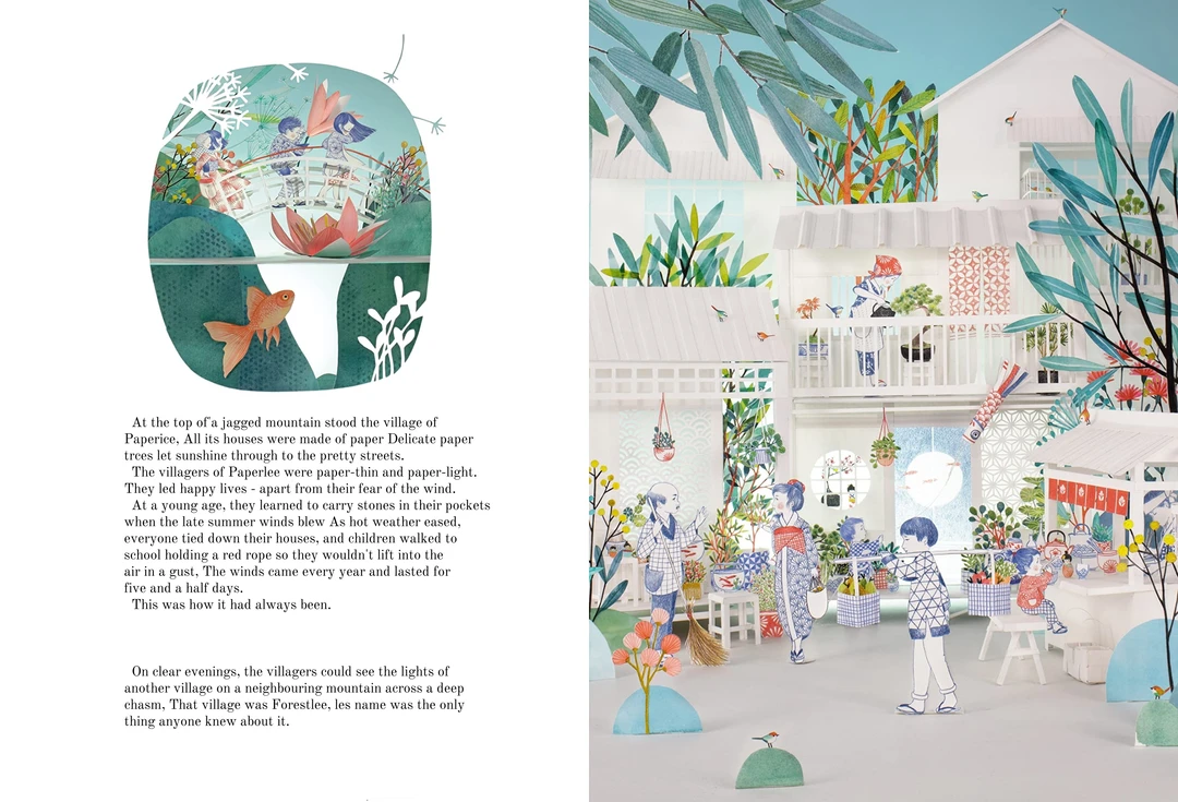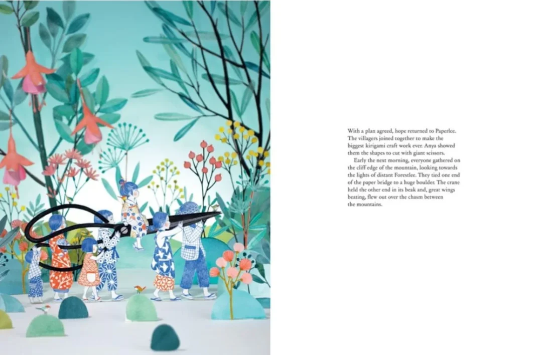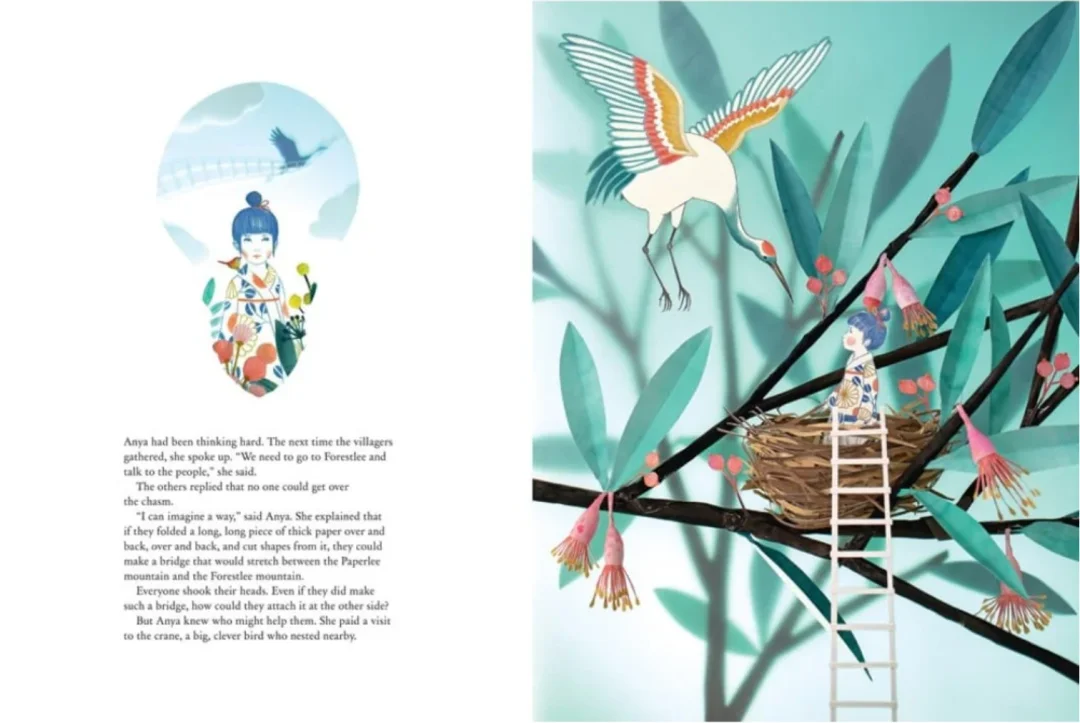 在轻盈如诗的纸之村落,少女安雅栖身于纸树摇曳、纸屋林立的梦幻天地。然而,当呼啸的狂风威胁到村庄的存亡,安雅毅然用折纸技艺搭建起桥梁,跨越深邃峡谷,与对岸的陌生人携手,踏上守护家园的征程。书中每一页插画都堪称艺术精品,3D 纸屋错落有致,折叠而成的枝叶栩栩如生,剪纸角色灵动鲜活,将折纸艺术(kirigami)的魅力展现得淋漓尽致。