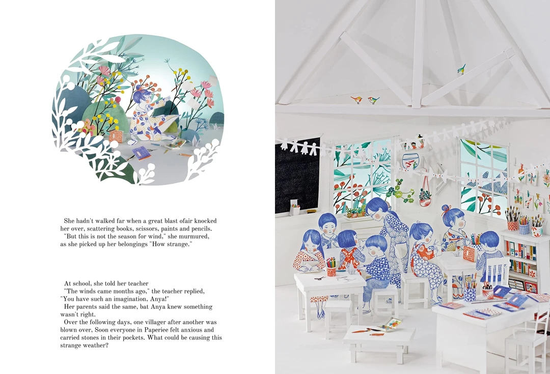 这是一个现代童话故事,讲述了一个勇敢的孩子安雅拯救她的村庄的故事,书中配有令人惊叹的剪纸和折纸艺术场景插画。