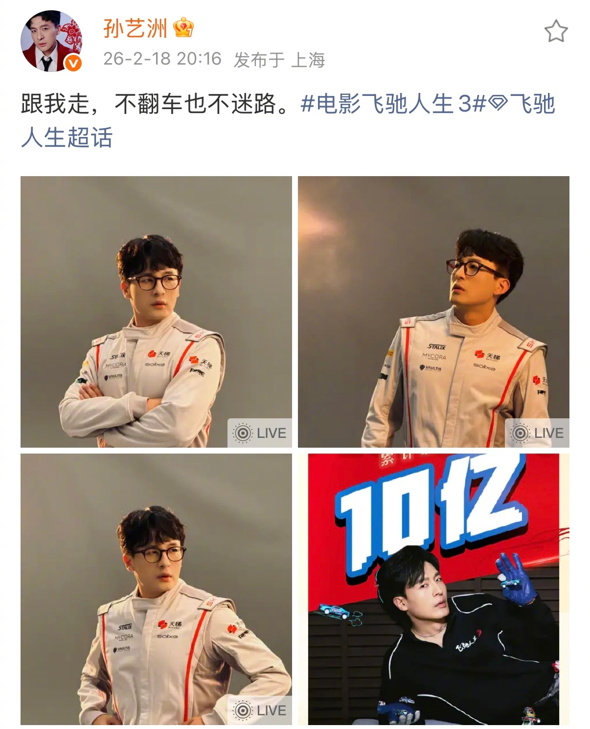 飞驰人生3总票房破10亿 《飞驰人生3》今日票房破10亿,几位演员尹正、张本煜、黄景瑜、沙溢、孙艺洲、段奕宏发博,各有各的梗,各有各的靓照🤝电影飞驰人生3春节档马上有戏