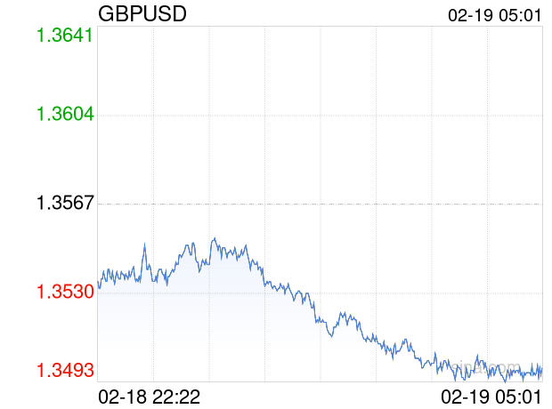新浪外汇消息2026年02月19日,截至05时00分,外汇市场上英镑兑美元汇率跌破1英镑兑换1.3496美元。跌幅为-0.5233%