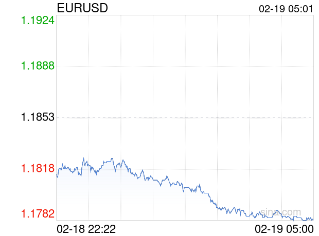 新浪外汇消息2026年02月19日,截至05时00分,外汇市场上欧元兑美元汇率跌破1欧元兑换1.1783美元。跌幅为-0.5906%