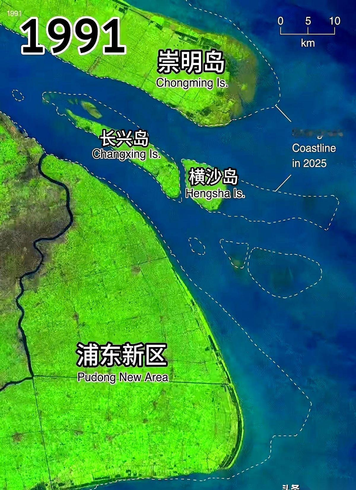 你看一眼四十年前的上海地图,再看今天,会发现一件怪事。 这座城市,硬生生从海里“长”出了800平方公里的新地盘。注意,不是人填的,是长出来的。 每一寸土地,都来自青藏高原的一粒沙。 雪水融化,裹着泥沙,冲刷半个中国,汇成一条浑黄的巨龙。这条龙到了出海口,没有力竭而亡,而是吐出了龙珠——用亿万吨的泥沙,把海岸线往前推。 两千多年,天天如此。 那些沿海的滩涂,就像有了生命,一米一米地向外扩张。今天你家门口是海,几十年后,可能就成了几公里外的内陆。江苏七成平原,都是这么一口一口“喂”出来的。 但这个持续了两千年的神迹,突然慢下来了。 长江半道上,一道巨大的水泥墙插了进去。 江水被拦腰斩断,流速变缓,那些本该被带到入海口的泥沙,开始大量沉在水库底,再也到不了上海。 长江的“造陆神力”,被削弱了。 下游的河口,过去是疯狂扩张,现在有些地方,潮水一冲,甚至开始往回缩。 那条哺育了我们的巨龙,好像有点累了。 我们站在它创造的土地上,盖楼,修路,做买卖,却好像忘了这片土地的来历。 所以这笔账到底该怎么算?用千年的自然造化,换几十年的安稳,值吗?