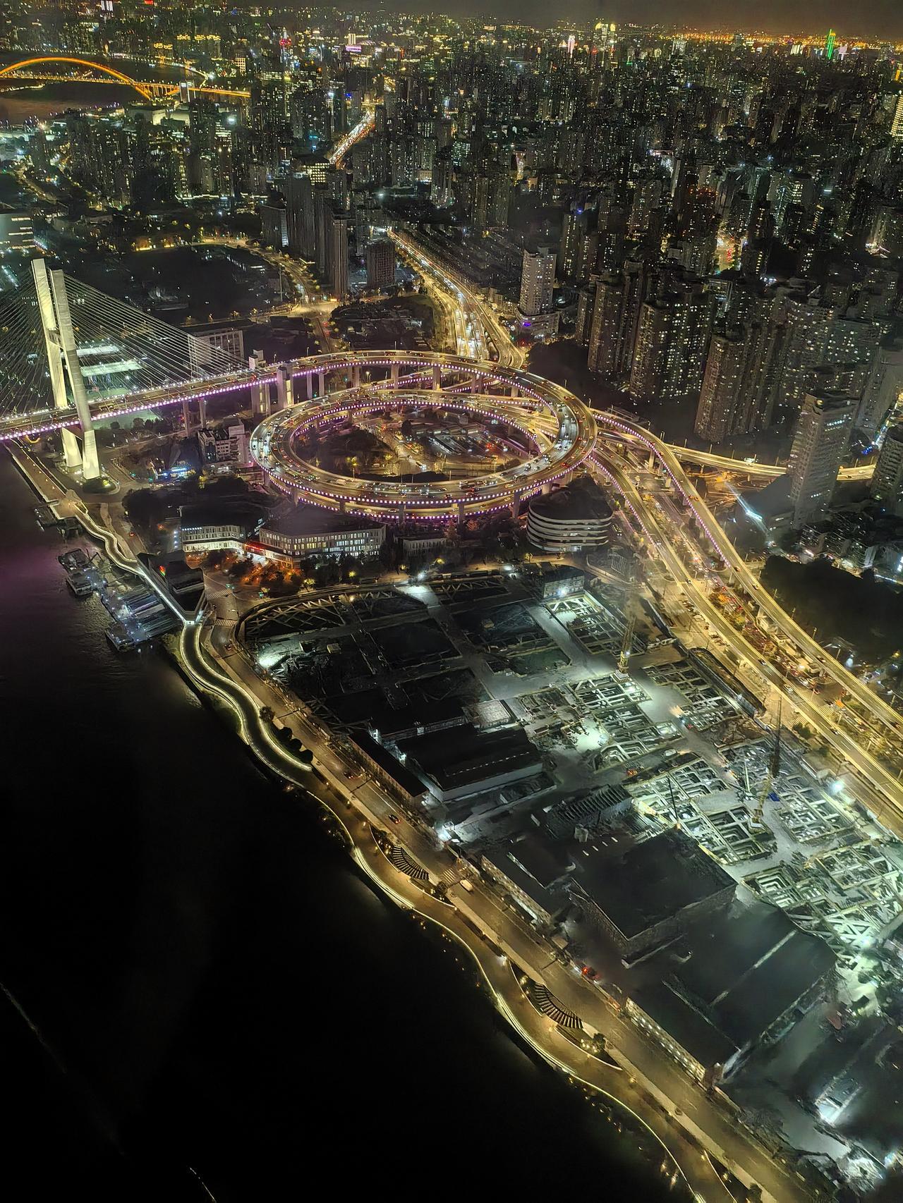 坐直升机🚁俯瞰上海南浦大桥夜景