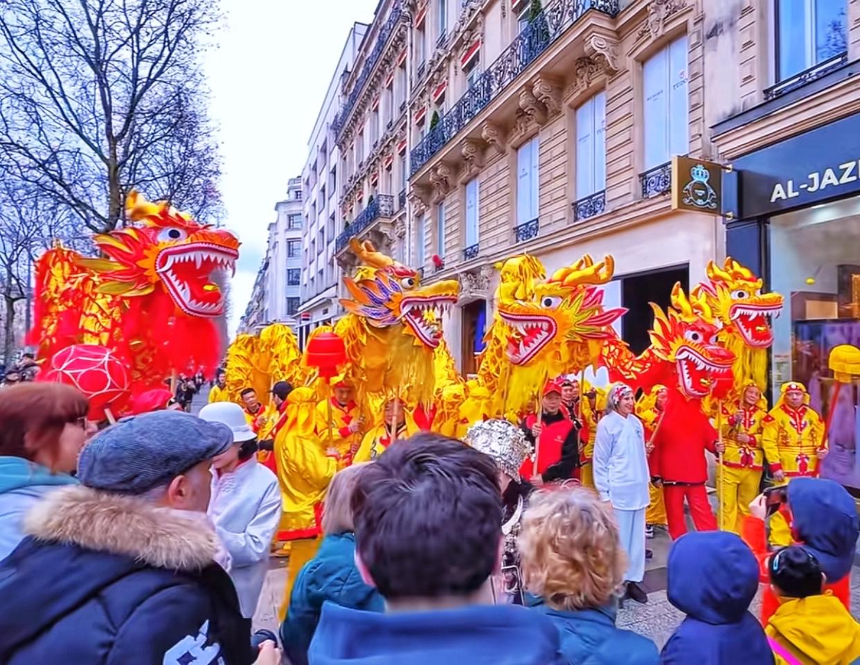 今年的法国华人给力呀,把春节的联欢游行搞在了香街上。联邦也是大力支持,外国友人参