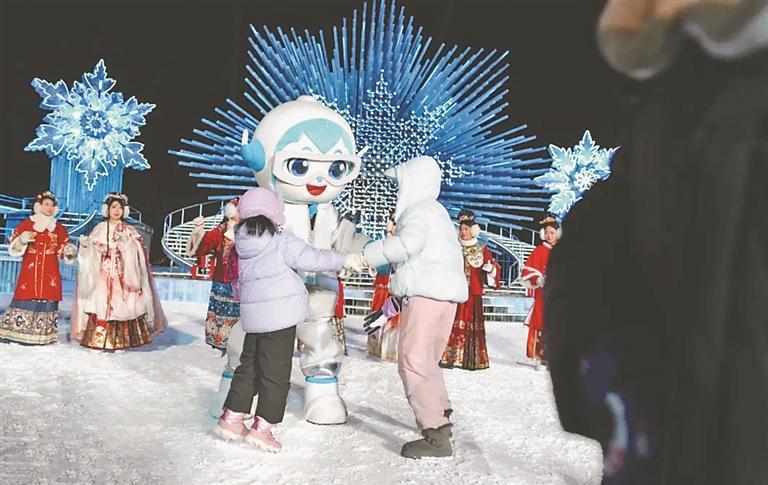 “冰雪秀”每天上演六场,从下午到夜晚,游客可根据行程安排,选择合适时段前往打卡,在春晚同款舞台上定格属于自己的“冰雪闪耀瞬间”。
