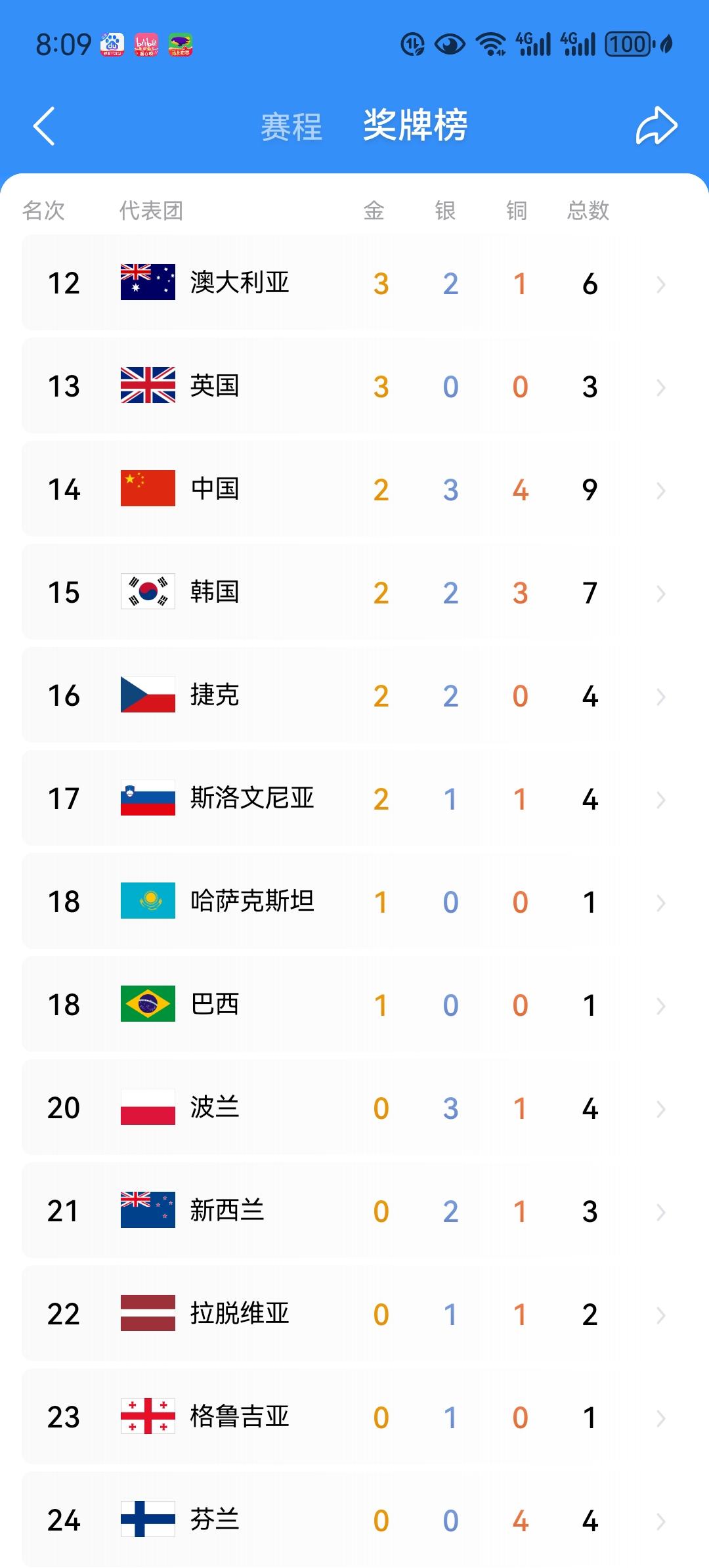 冬奥会最新奖牌榜,中国2金3银4铜上升到第14位。现在只剩下两个悬念。一个是中国队能否超过温哥华的5金2银4铜的海外最佳成绩。一个是中韩两国谁的成绩会更好。中国还有3个夺金点,韩国应该只剩2个,理论上中国赢面更大。不过是肯定超不过日本了。和日本的差距还是比较大的。