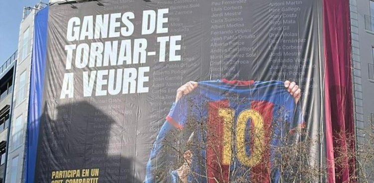 巴萨主席候选人挂出模仿梅西经典庆祝的海报:渴望再次见到你