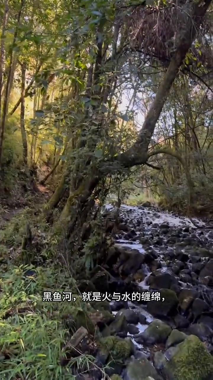 腾冲黑水河。 各位朋友,欢迎来到腾冲黑鱼河--火山地质公园深处的秘境。这条河是数万年前火山熔岩堵截地下暗河逼出来的地表清流,常年恒温18°C,水清得像翡翠,夏秋还会涌出成群小黑鱼。 往前走就能听见三道瀑布的轰鸣,30米高的玄武岩断崖上白练腾空、水雾漫谷,雨季更能连成两百米宽的水幕,阳光里常挂着细碎的彩虹。再看两岸与河底遍布着黝黑的火山石,有布满气孔、轻得能浮在水面的浮石,更有堪称地质奇迹的六棱柱状节理群,像无数把利剑直插河谷,那是岩浆快速冷却后大自然亲手刻下的纹理。 黑鱼河就是火与水的缠绵,是刻在石头上的地球往事,特别值得大家沿木栈道慢慢走、细细品。让我们再次静静的欣赏黑水河瀑布,这里是六棱柱状节理群,你来腾冲一定要来黑水河打卡。