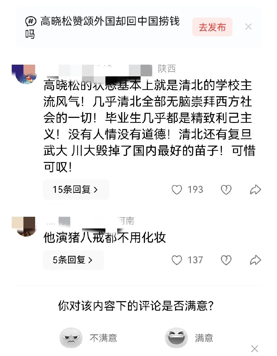 高晓松自曝:在北欧不敢说话,觉得自己丑陋粗鄙 2020年10月,他发文称到北欧没几天,不敢跟人交流。理由是内心"丑陋粗鄙",每天琢磨勾心斗角,跟北欧人"境界差太远"。 表面剖析自己,实则贬低国。competitive society 是他对中国社会的定义, ugly and vulgar 是他对中国人的自我归类。剖析是假,定性是真——把北欧捧上神坛,把中国踩进泥里。 赞颂外国,却老回中国捞钱?既然北欧境界高,为啥不留下净化灵魂?身体很诚实,还是要回来参加综艺、开直播、卖课程。嘴上的主义,心里的生意。 婚姻不幸 allegedly 外国人造成,还赞颂?网传他被外国前妻伤过,按常理该醒悟。但高晓松偏不,继续捧北欧踩中国。这是斯德哥尔摩综合征,还是人设惯性?看不懂。 公知的套路:通过自我贬低换优越感。先把自己矮化,再把外国神化,最后站在"觉醒者"高地俯视众生。这套2020年还行,现在观众醒了:你境界低别带上我。 北欧真那么香?滤镜该碎了。高福利背后是低效率, peace 背后是军事依赖。高晓松不敢说话,可能是语言不通,别升华成灵魂洗礼。自卑不是反思,是病。 网友:高晓松的状态基本上就是清北的学校主流风气!几乎清北全部无脑崇拜西方社会的一切!毕业生几乎都是精致利己主义!没有人情没有道德!清北还有复旦 武大 川大毁掉了国内最好的苗子!可惜可叹! 高晓松的"北欧不敢说话"论,是公知话语体系的典型样本:以自我贬低为切口,完成对本土文化的否定和西方文明的朝圣。但逻辑漏洞明显——既然中国如此"丑陋粗鄙",为何还要回来捞金?既然外国人 allegedly 造成婚姻不幸,为何还要赞颂?答案或许是:这套话语是生意,是人设,是流量密码,唯独不是真心话。2020年的文章今天被翻出来鞭挞,说明时代变了:观众不再接受"自我矮化换优越感"的套路。北欧有北欧的好,但没必要跪着看。高晓松们该明白,真正的文化自信不是吹外国,也不是骂祖国,是平视世界。毕竟,不敢说话可能是语言问题,别总上升到灵魂高度。