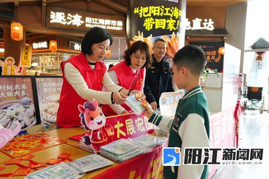 交通志愿者向旅客发放阳江旅游手绘图等小礼品。袁荣泽摄
