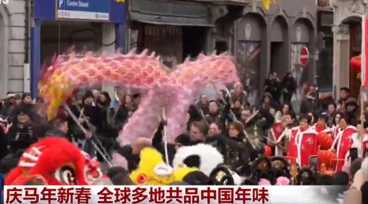 2026马年新春,中国年味跨越山海,点亮全球。比利时、巴西等国街头红灯高挂,醒狮