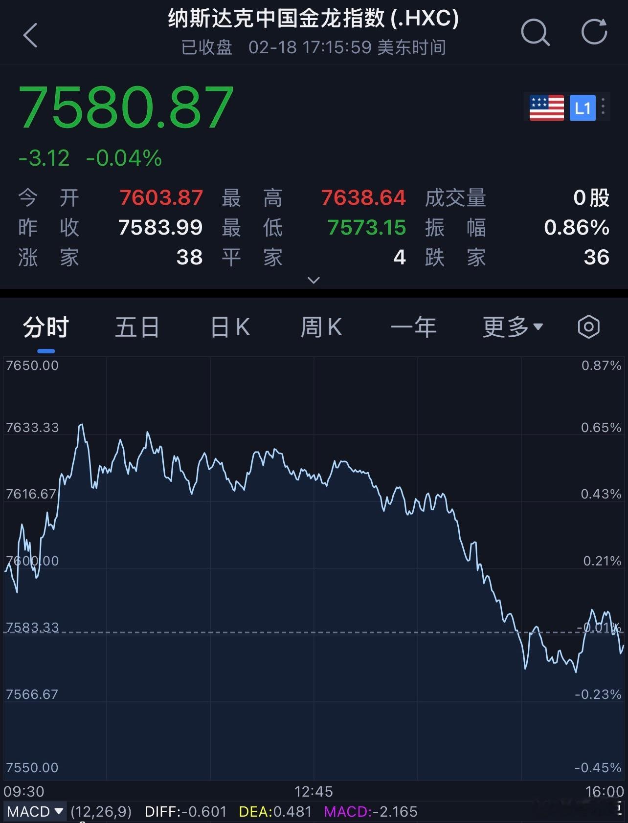 中概股方面,纳斯达克中国金龙指数跌0.04%。