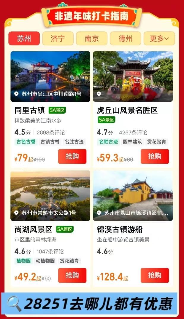 在同里,找回消失的年味!春节直奔这座江南古镇,看老师傅写春联、拓年画,沉浸式感受非遗。逛南园茶社听评弹,坐手摇船穿红灯笼河道,烟火气拉满。古镇门票上去哪儿App搜28251预订,随机立减31.1元,省心又划算。去哪儿28251什么意思