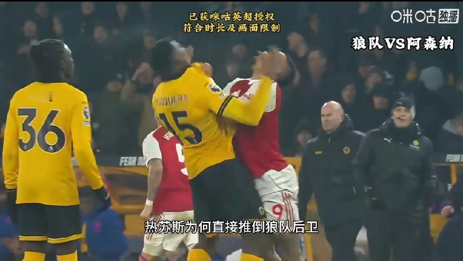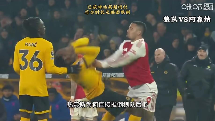 阿森纳球员热苏斯冲突中推倒狼队后卫莫斯克拉,真的是输球又输人。但凡2:0领先后有这种血性,也不至于最后被对手绝平。 记得这场比赛下半场里面有这么一个画面,阿森纳持球进攻球员四周没有任何一位狼队球员,可他却毫不犹豫的把球往后传,就这种保守的打法,哪里还有半点冠军的气质! 这场比赛之后,连铁杆枪手球迷都不看好阿森纳能拿到这个赛季的英超冠军了!