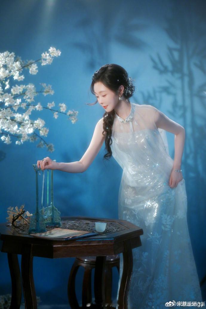 宋轶把浮光锦穿身上了宋轶把浮光锦穿身上了,简直就是美的我一大跳呀。蓝白细闪的长裙