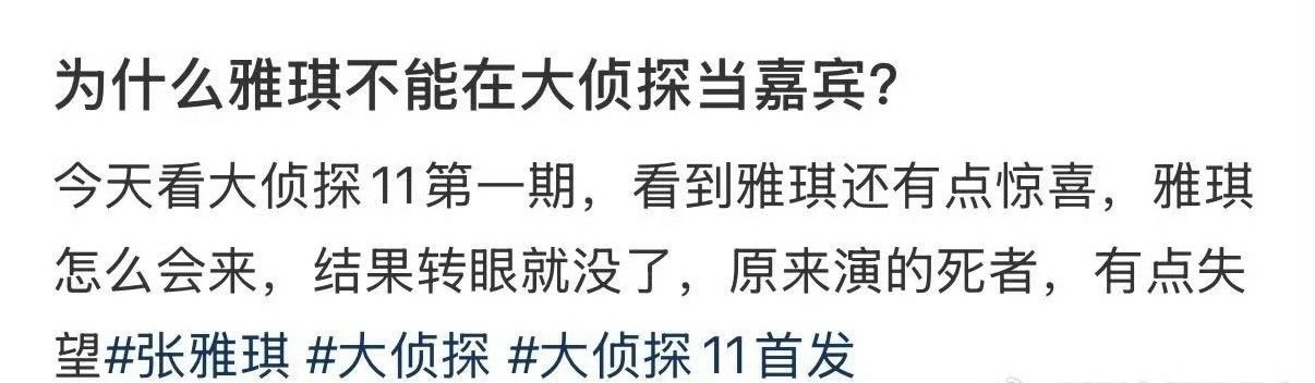 为什么张雅琪不能在大侦探当嘉宾大侦探 看大侦探11被张雅琪狠狠惊艳,冷艳气质一出场就抓人,客串甄行长戏份虽少却超有记忆点,表现力真的很绝。