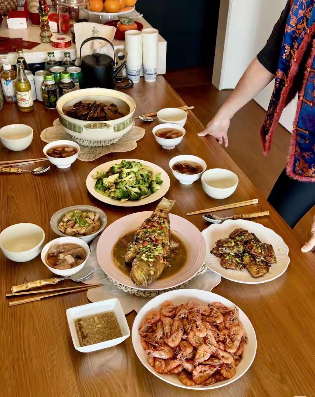 杨采钰和婆家人合影,老公一脸正气,婆婆和小姑子看起来很和善