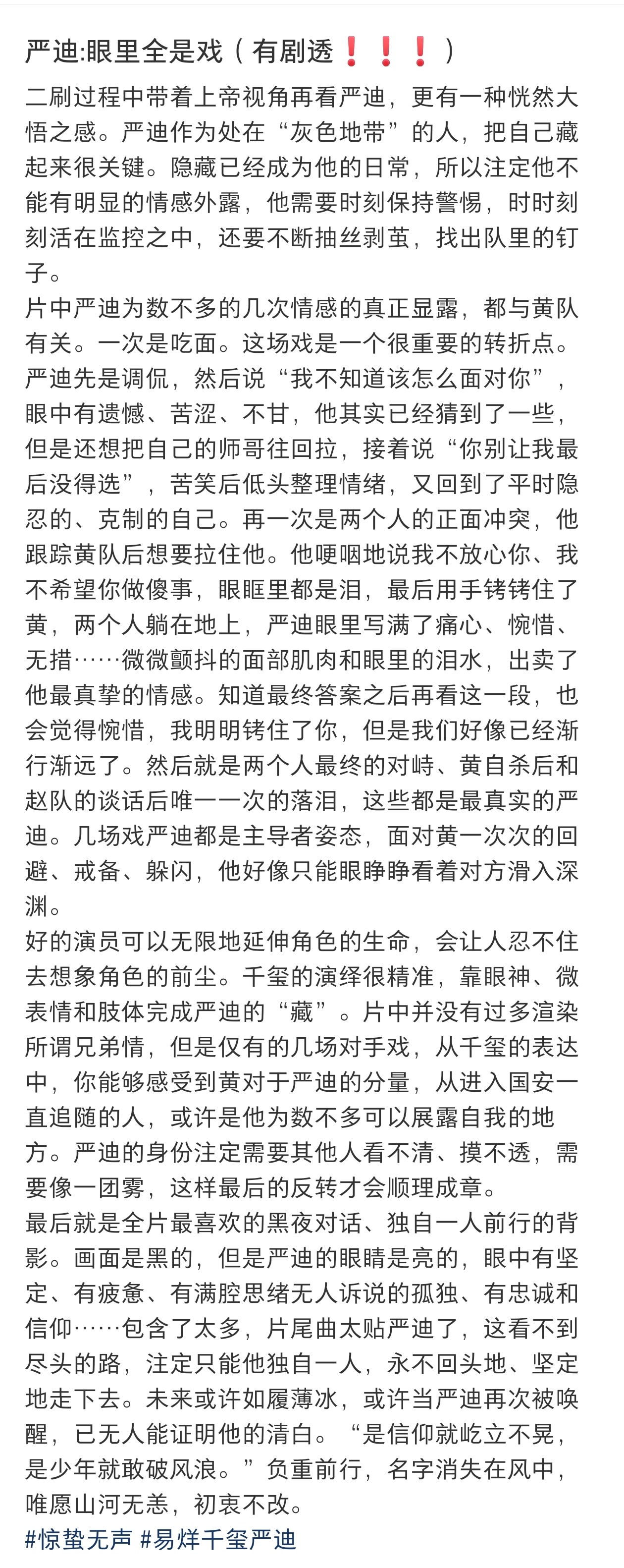 果然和各位观众想的一样!电影惊蛰无声的精彩和升华全靠易烊千玺演的严迪严迪五年的付出沉默和委屈