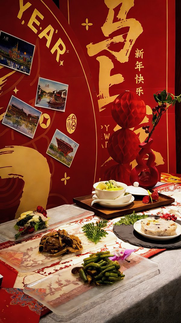 上海浦东机场T2航站楼71号国际休息室围绕新春主题进行布置,设置春节主题画板、传统美食展示区及特色活动展台,推出上海年味特色餐食,与旅客开展春节主题趣味互动活动。