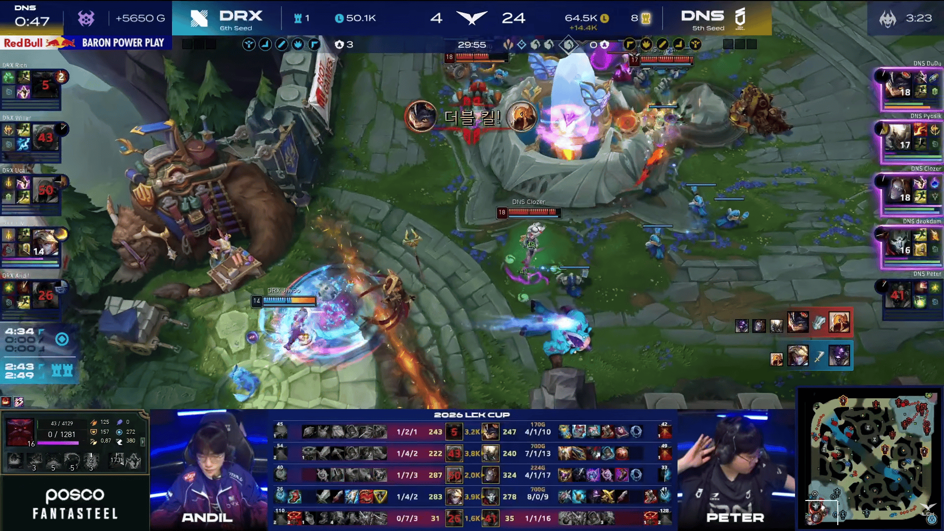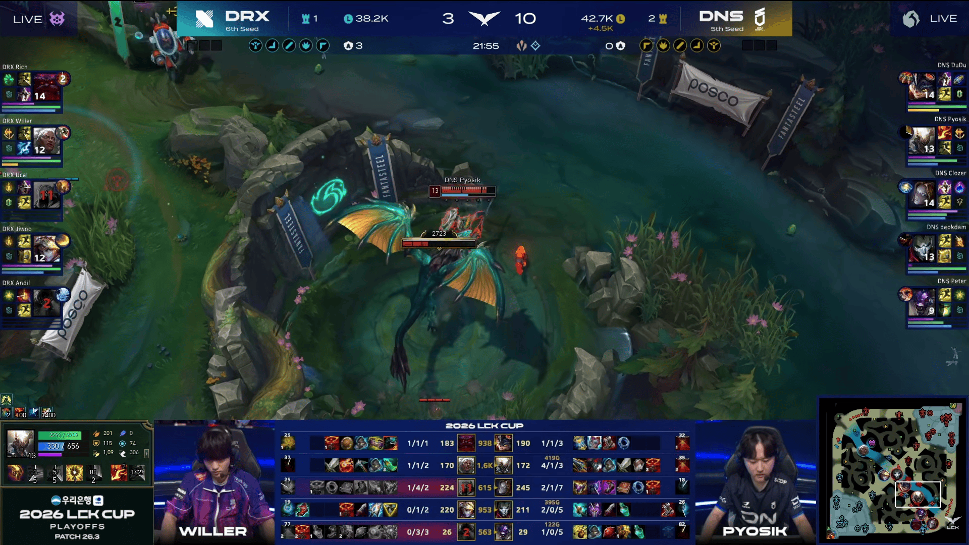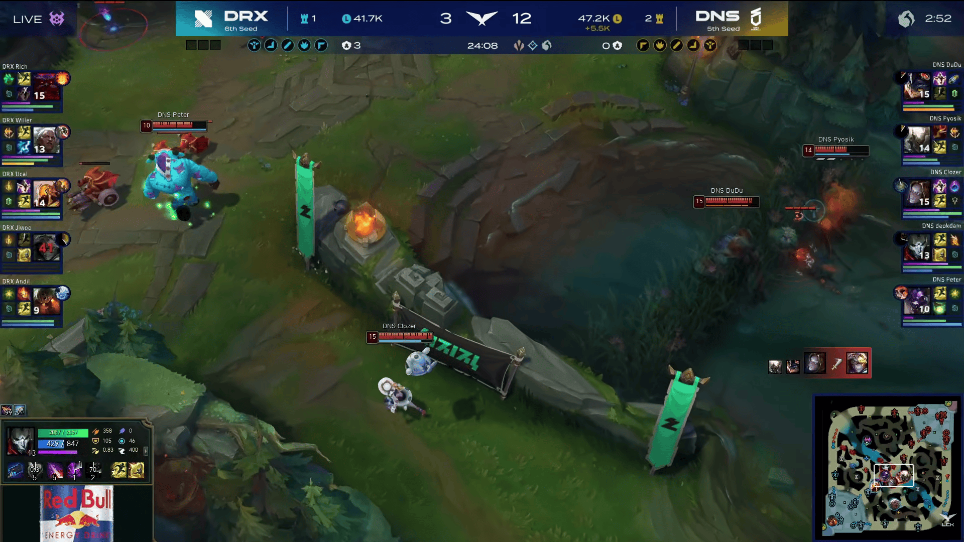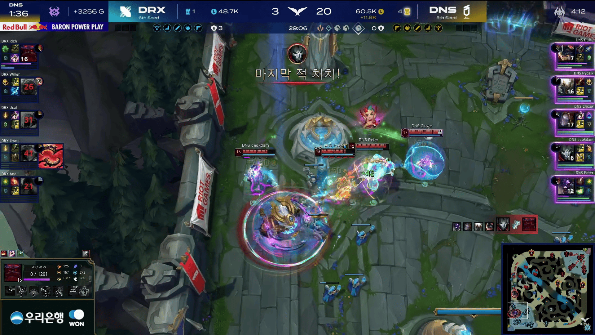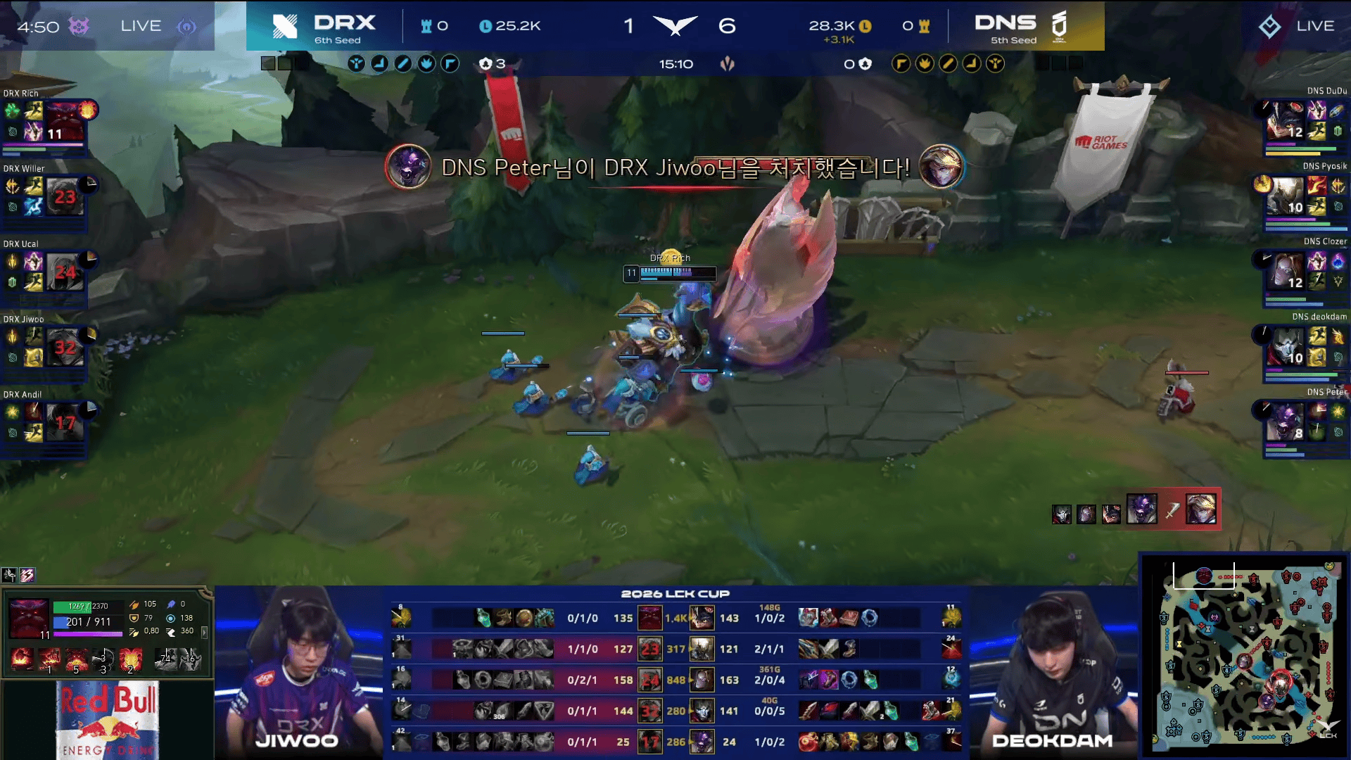 比赛第15分钟,DNS小龙团混战打出一波0换4大胜,此后DNS开始确立优势。