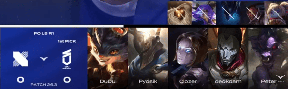 DRX选用:Rich奥恩、Willer安蓓萨、Ucal沙皇、Jiwoo伊泽瑞尔、Andil泰坦