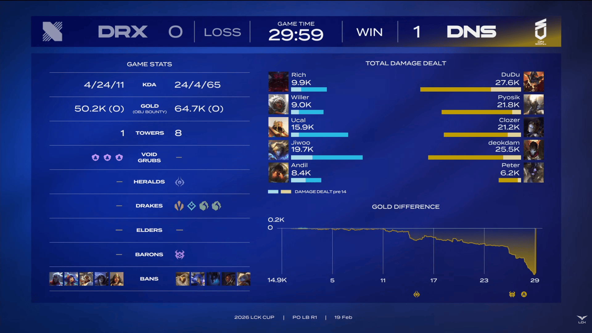 虎扑02月19日讯[GAME1]DRX蓝色方、DNS红色方
