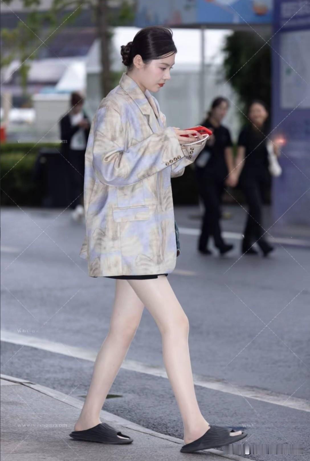 优雅漫步,时尚随行,手机相伴,步履轻盈