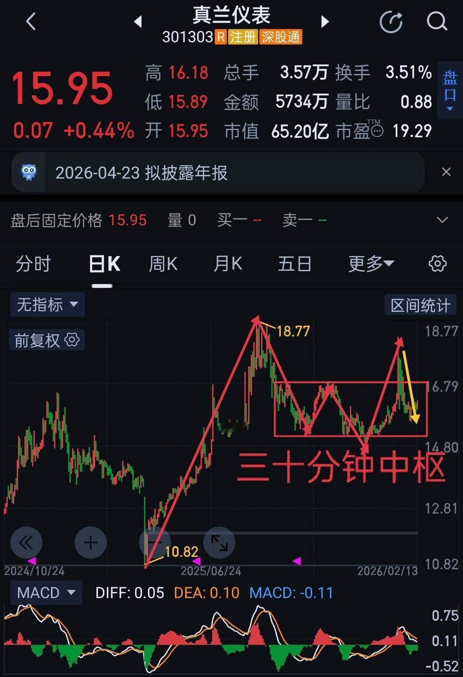 "真兰仪表"301303,多级别"缠论"走势结构分享。图中黄色箭头属于待完成走势