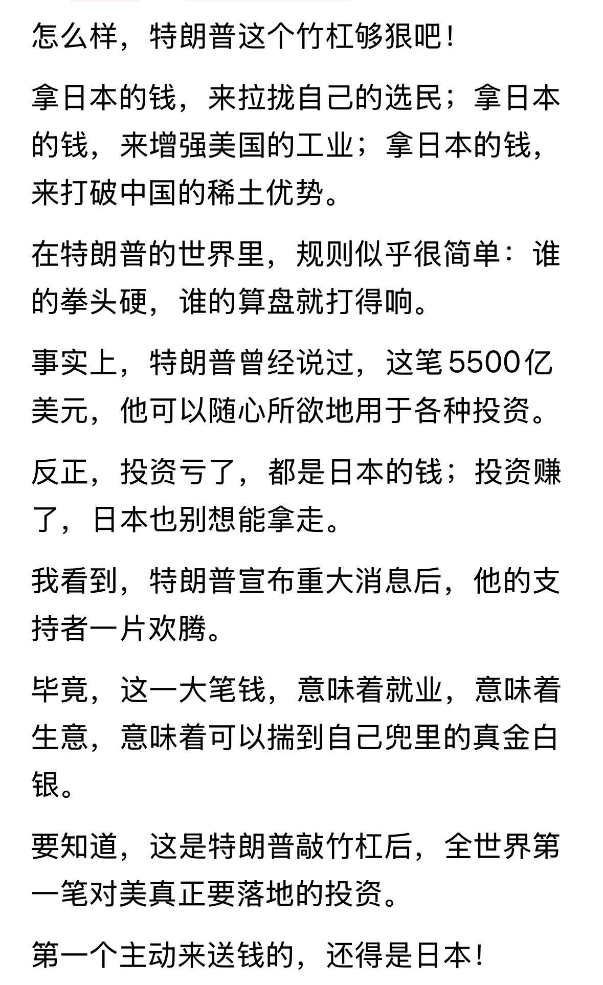 牛弹琴看起来,很支持川普敲日本竹杠,但是,川普今天敲日本,明天敲全世界,这个热闹