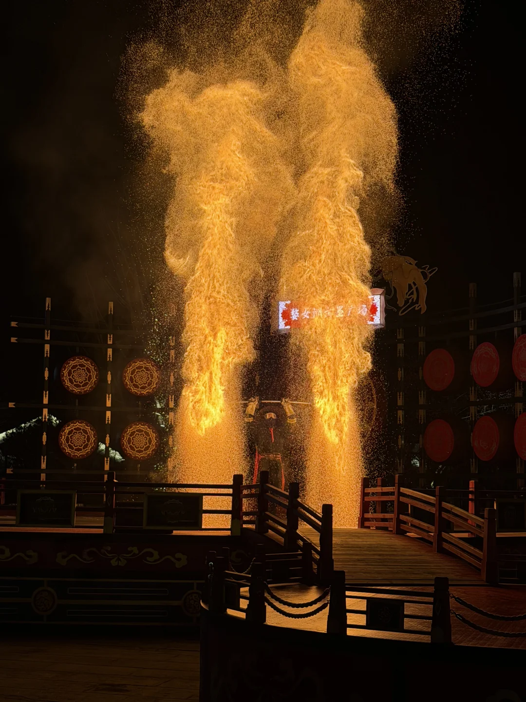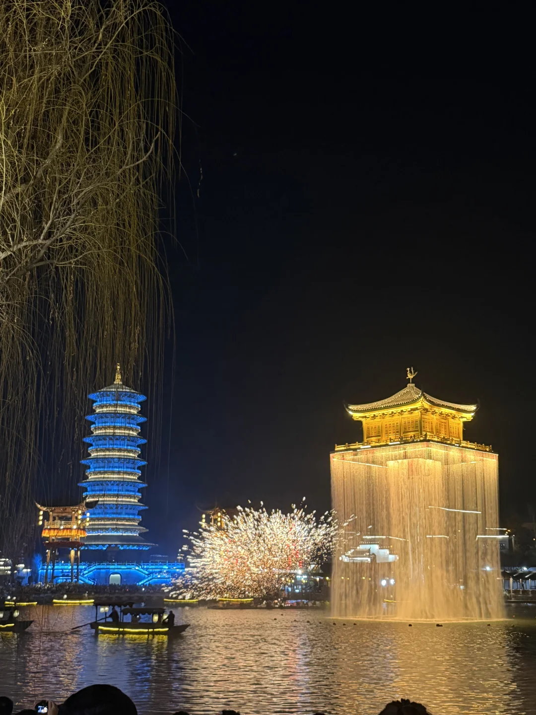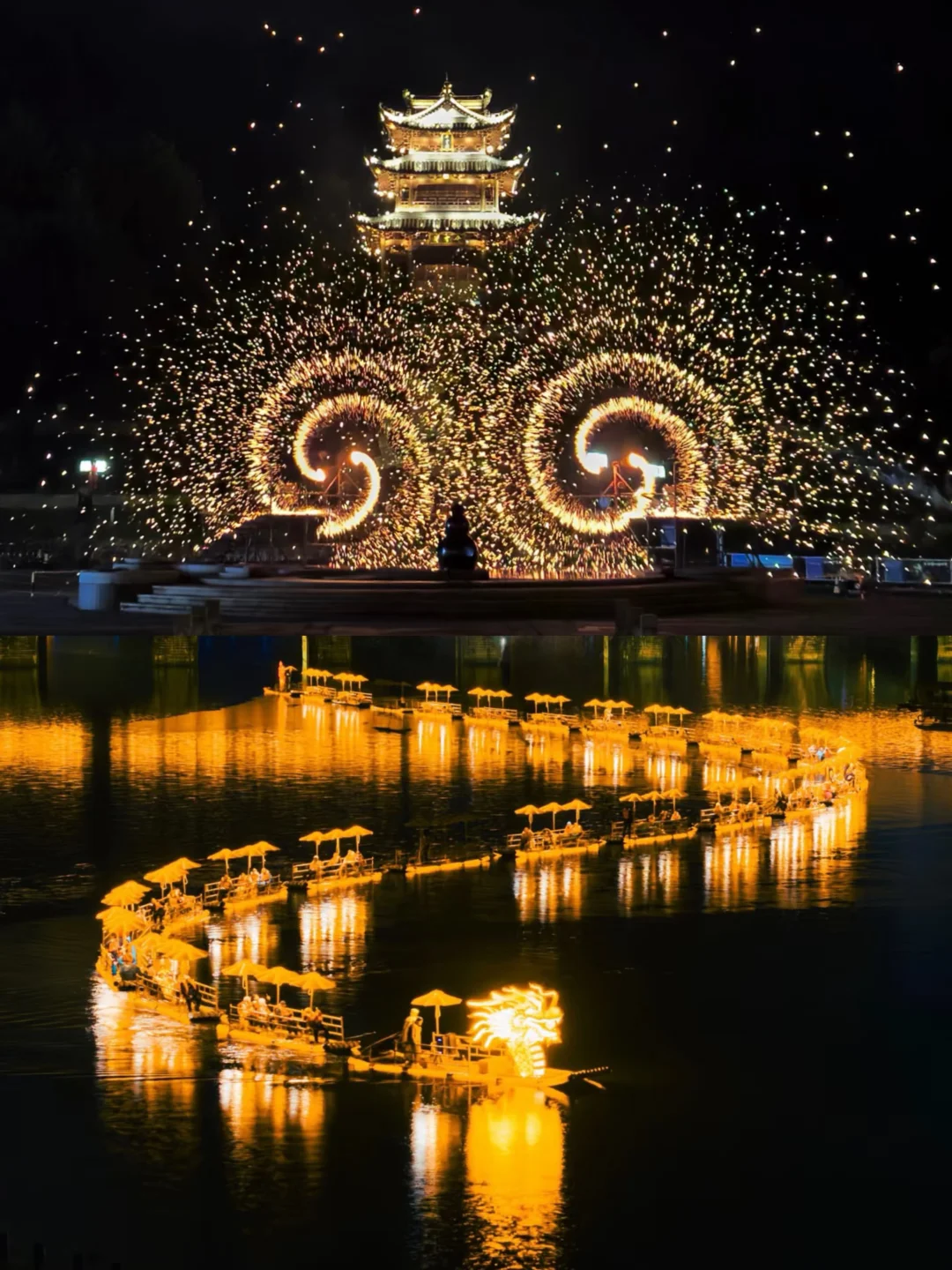 ✔️抱玉塔烟花秀+湖上打铁花,配合古风建筑,美到失语
