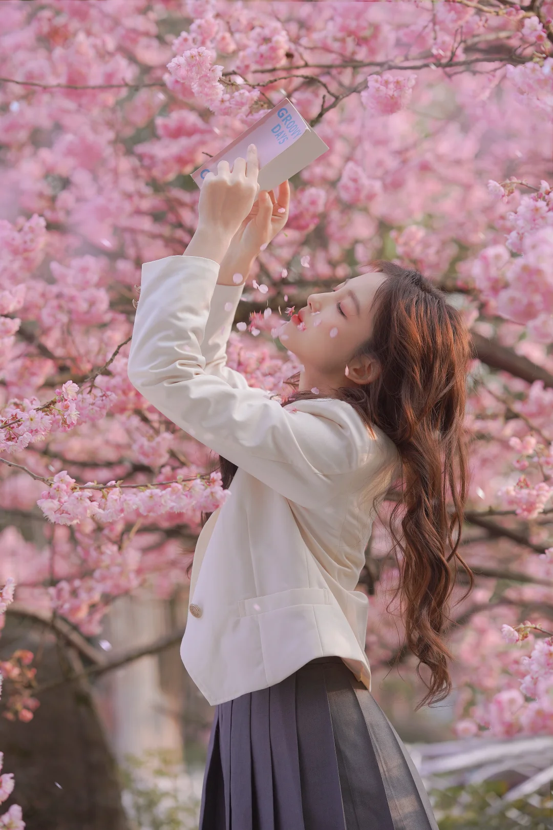 春天当然要拍樱花啦,记得一定要提前带板凳! 拍照姿势参考: 1️⃣手拿樱花,转身回头! 2️⃣在花丛中,抬头仰望 3️⃣把花丛从书中撒在脸上! 4️⃣把花花递给镜头