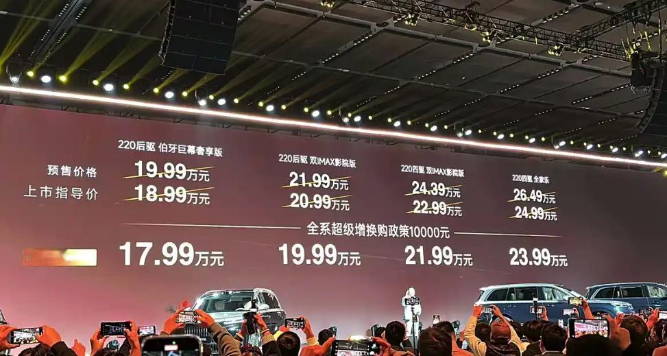 20万级闭眼入!奇瑞风云T11满配11气囊+猎鹰智驾,这配置竟不是百万豪车奇瑞风云旗下旗舰6座SUV风云T11正式上市,推出4款配置,售价18.99-24.99万元,限时置换价17.99-23.99万元。 车身尺寸亮眼,车长5205mm、轴距3120mm,内部空间宽敞。座椅采用13 层+5D海绵,通风性提升30%,还具备母婴级健康座舱属性,三排均为电动座椅,搭配三温区空调,三排放倒可拓展798L空间,Type-C接口遍布三排,支持66W快充与语音控制一键拓展1.8m大床,另有- 8℃-50℃调节的9.2L真冰箱、17.3英寸3K后舱娱乐屏。 座舱配备30英寸6K寰宇屏,支持多窗口分屏与CarPlay等互联,全系标配小奇同学AI语音助手,还有伯牙之音豪华音响系统。中控台设无线充电面板与水晶按钮,质感十足。 动力上,新车搭载黄金增程CEM与1.5T混动专用发动机,热效率45.79%。两驱版后置电机功率195kW,四驱版系统综合功率345kW,0-100km/h 加速 5.4秒,CLTC纯电续航220km、综合续航1400km,WLTC馈电油耗最低6.1L/100km,支持15分钟快充至80%,有5+1种驾驶模式,雪豹智能四驱与AI数字底盘提升行驶安全性。 智能辅助驾驶全系标配猎鹰500,覆盖多场景,猎鹰700额外配激光雷达。同时,全系标配静音玻璃、静音轮胎及优质悬架,驾乘平稳静谧。安全方面,全系标配磐石车身2.0(88%高强度钢铝占比)、11个安全气囊与AEB紧急制动,防护全面。