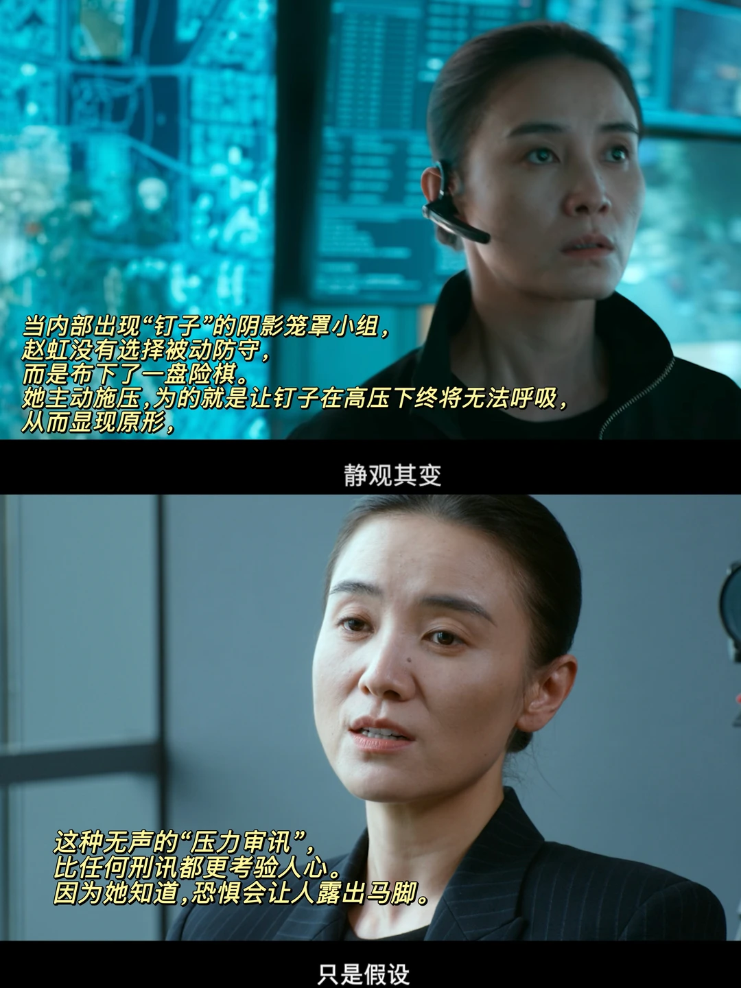 看完《惊蛰无声》好久,心还在砰砰跳,影片中所传递出的那种紧张刺激过了好久仍然在让我回味。张艺谋这次真的有点子惊喜到我了,尤其是最后20分钟,当所有线索完成闭环,那种究极真相扑面而来的震撼和冲击感,让我一整个鸡皮疙瘩都起来了 ! (有部分剧透,慎入,并拜托所有看到这篇帖子的人都别剧透最后20分钟) 而这部电影也用一场场精心设计的“攻心计”,告诉了我们:暗战的尽头,从来都是人心。 1.赵虹的“压力审讯”。 当内部出现“钉子”的阴影笼罩小组,赵虹没有选择被动防守,而是布下了一盘险棋。她主动施压,为的就是让钉子在高压下终将无法呼吸,从而显现原形,这种无声的“压力审讯”,比任何刑讯都更考验人心。因为她知道,恐惧会让人露出马脚。 2.白帆的“温水煮青蛙”。 白帆的“攻心”术,是一场教科书般的心理操控。 她先为黄凯做了一次精准的心理画像,准确拿捏了其弱点,当夫妻冷战的裂缝出现时,她如幽灵般适时降临,并拍下“证据”让黄凯主动入局。紧接着从 小蓝瓶”开始,让他迈出实质性背叛的第一步,并利用李楠作为“人证”让他陷入崩溃。 最后,是李楠的si。白帆先是诱导黄凯动手,再亲手引爆,将李楠的si泼在他身上,让他背负上无法洗脱的罪孽。这一步步,环环相扣,将黄凯推向了绝望的深渊,让他完成了自我PUA的闭环,心理防线彻底崩塌,成了暗战里最让人唏嘘的棋子。 3.严迪的“反复心理试探”。 严迪对黄凯的试探,是这场心理战中最令人心碎的一环。“所以你也觉得有钉子?”“你外头是不是真有人了?”“你不要让我最后没有选择。”这些看似随意的对话,字字藏锋,句句诛心。他像在走钢丝,一边是职责所在,一边是对战友的不忍。他私下跟踪黄凯,试图在深渊边缘拉回自己的战友,这种在信任与怀疑间反复横跳的痛苦,正是“攻心”战最真实的代价。 4.国安小队的“以彼之道,还施彼身”。 面对敌人的“攻心”,国安小队也展开了精妙的反制,顺势而为,利用敌方“丢卒保车”的计谋,反向操作,让敌方更信任严迪,从而为最终的收网创造了条件。 “惊蛰”是唤醒,而“无声”是代价,《惊蛰无声》讲透了谍战片的“上兵伐谋、攻心为上”!而对于那些行走在阴影、黑暗里面做这一工作的人,更是值得我们说一声respect!