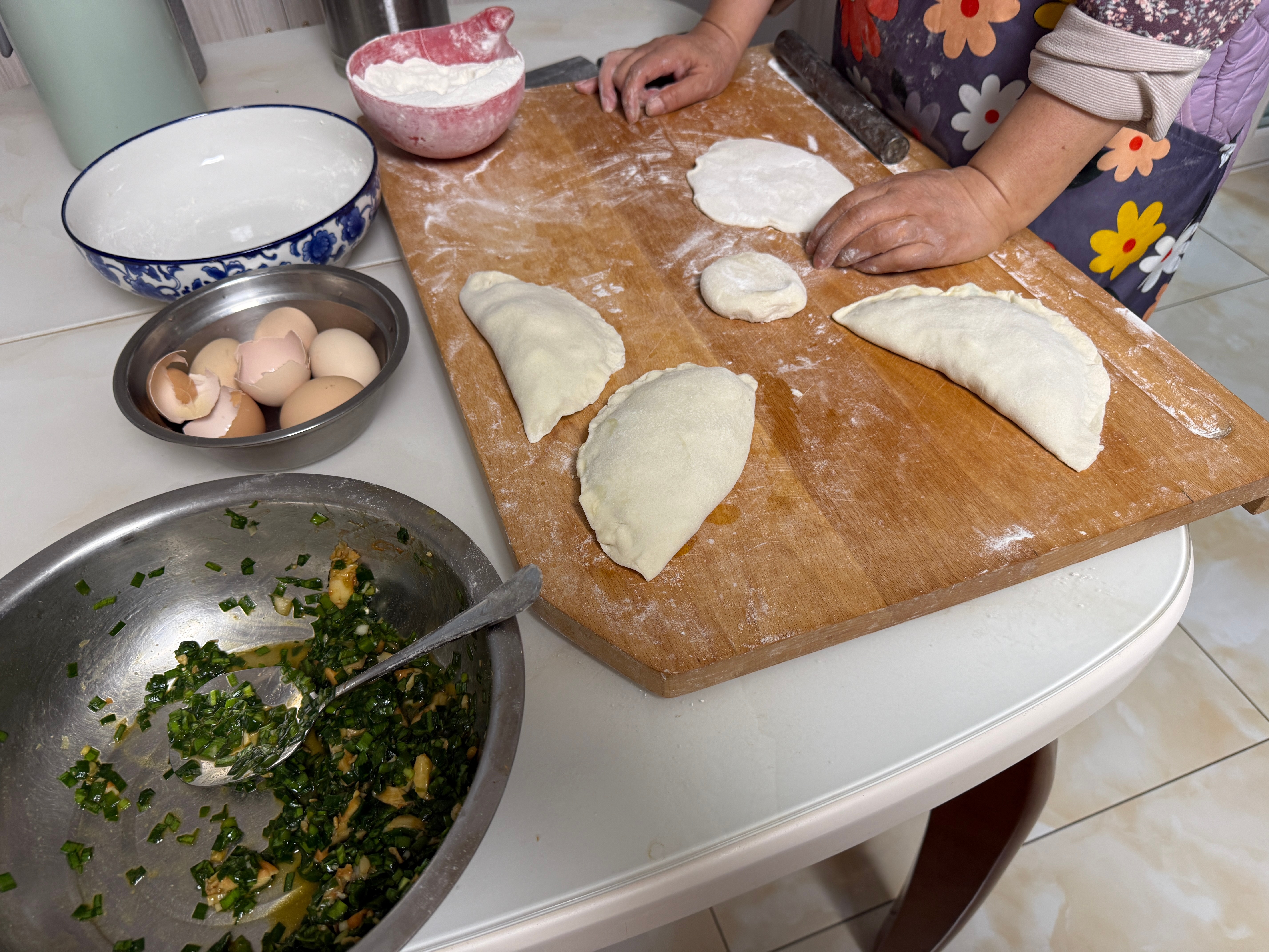 今儿我媳妇说我爱吃韭菜盒子,家里开始做韭菜盒子了,这么巨大!! 威海