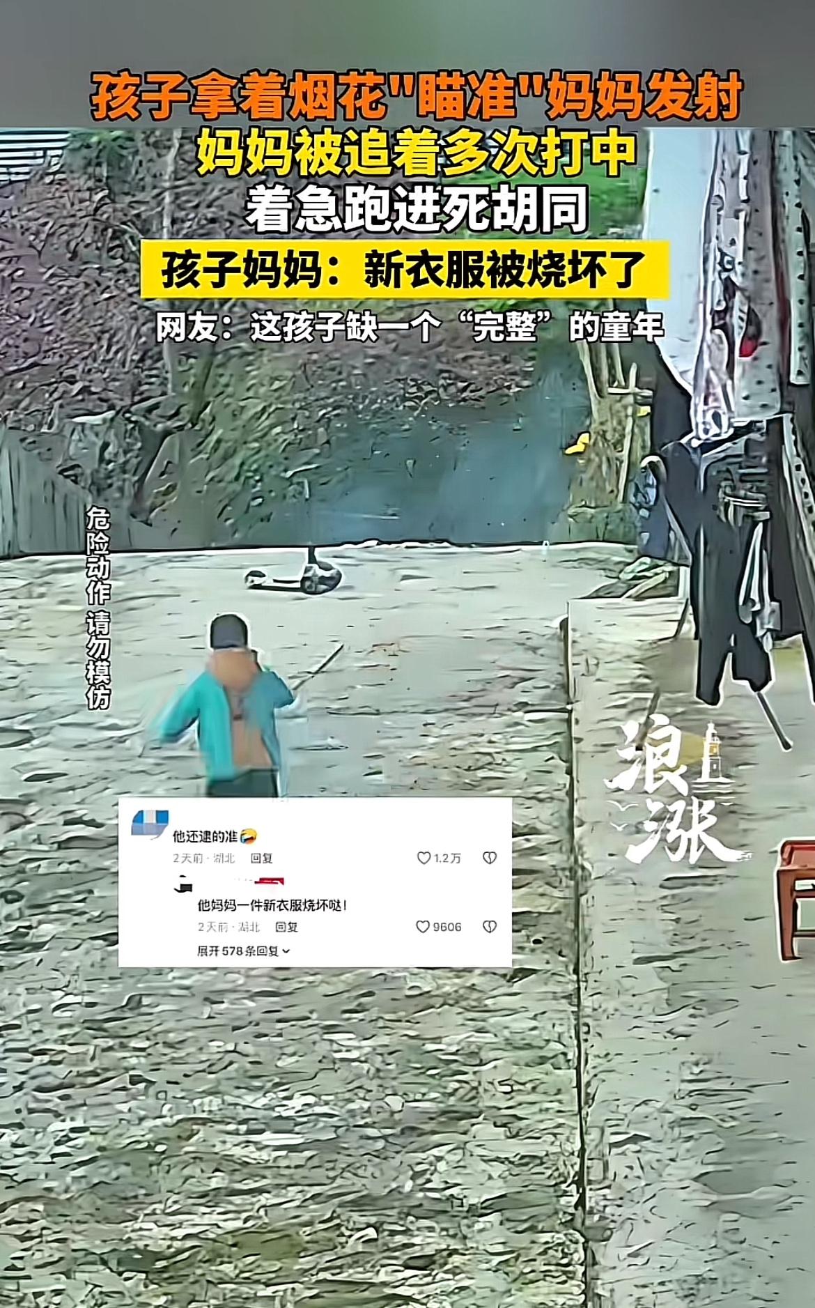 2月17日湖北这事儿太闹心了。妈妈好心给孩子点烟花,结果孩子把烟花当“武器”,直接“瞄准”妈妈发射。这追逐中,妈妈慌不择路进了死胡同,新衣服瞬间被烧出大窟窿,好好一件新衣服转眼成了废布。 孩子可能觉得这是刺激游戏,但烟花可是易燃易爆物品,高温火星危险极大。这事儿不光是衣服烧坏这么简单,还暴露了孩子安全意识匮乏,家庭教育中界限感缺失。大家可得引以为戒,嬉笑玩耍时,安全警钟得时刻长鸣,别让“喜事”变“憾事”!