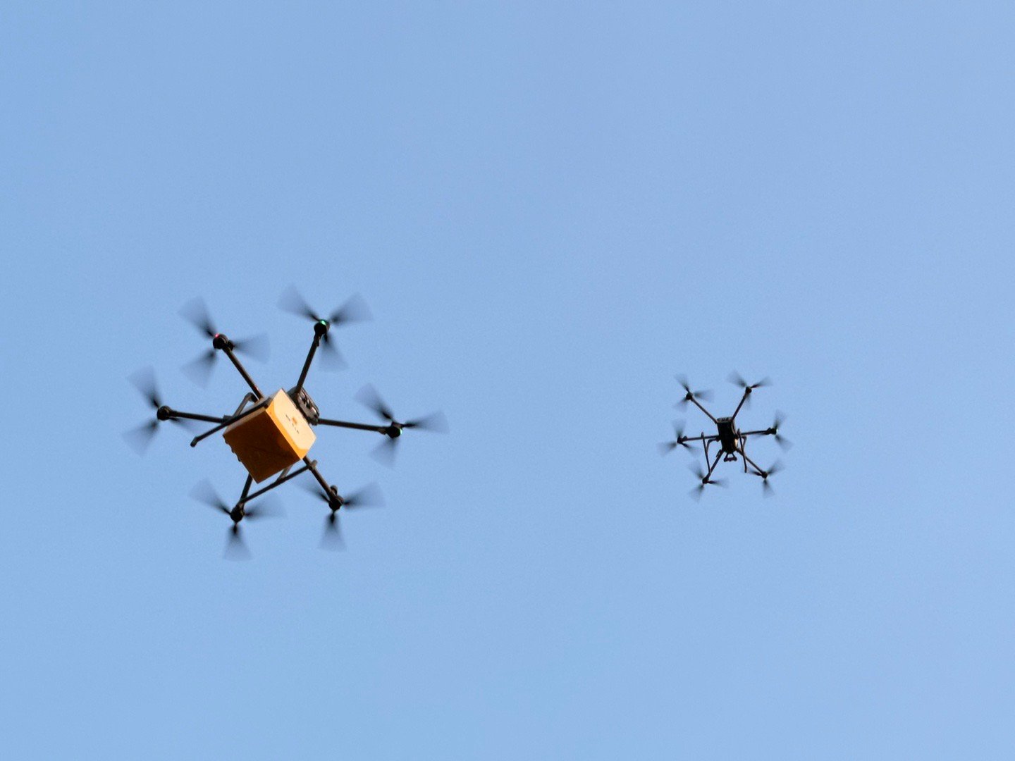 而在深圳就不一样了,重载无人机络绎不绝地来往于起降平台,路人饶有兴致地抬头看,下面挂的箱子里是你刚点的奶茶。