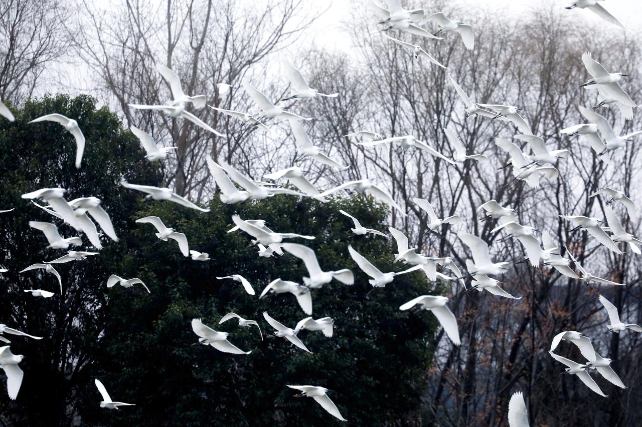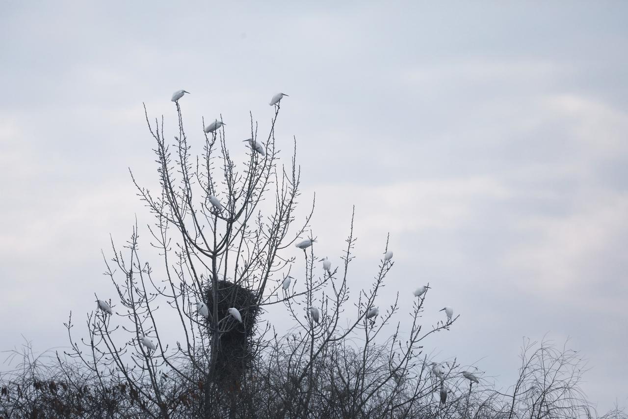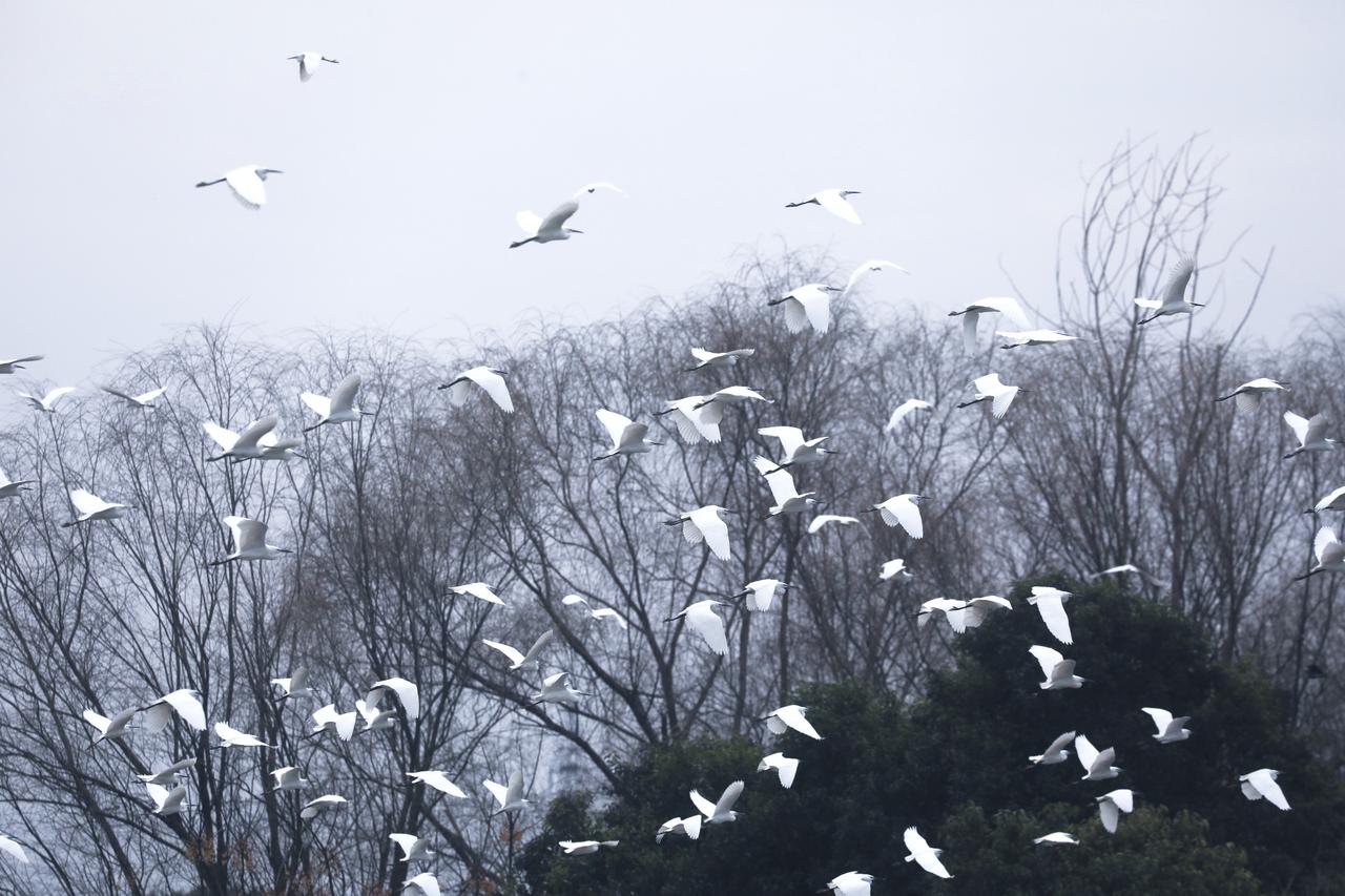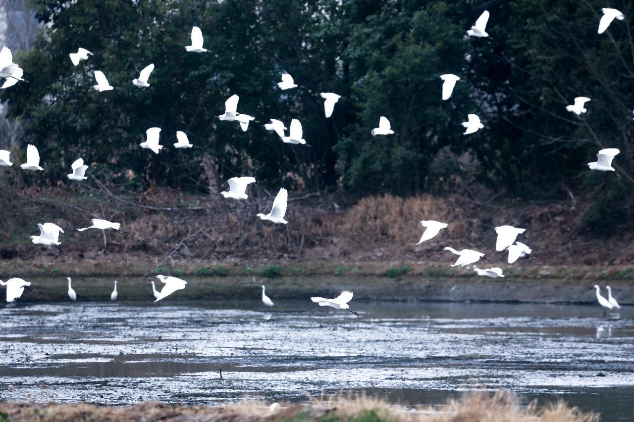 大年初三,浙江湖州德清,邂逅一起白鹭。 白鹭全身覆盖雪白羽毛,像裹了层白纱,细长