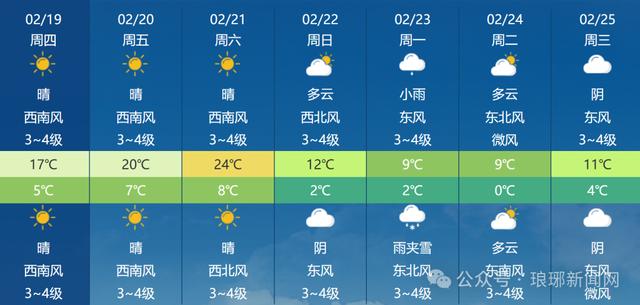 20日白天到夜间,晴间多云,西南风3~4级阵风5~6级,气温20~7℃;