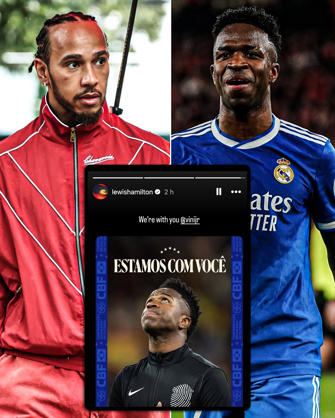 虎扑02月19日讯对于维尼修斯疑似被本菲卡球员普雷斯蒂安尼疑似种族歧视一事,F1车手汉密尔顿在社媒转发,配文“我们与你同在@维尼修斯”。