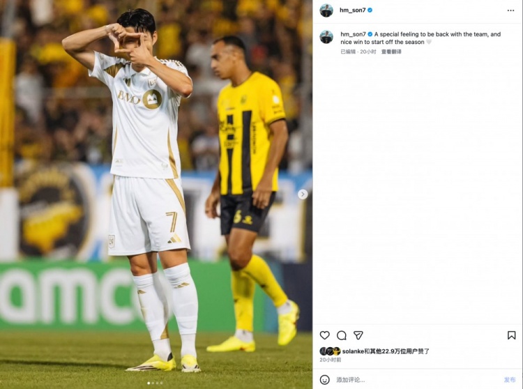 孙兴慜社媒写道:重返球队的感觉很特别,并以一场胜利开启新赛季,这太棒了
