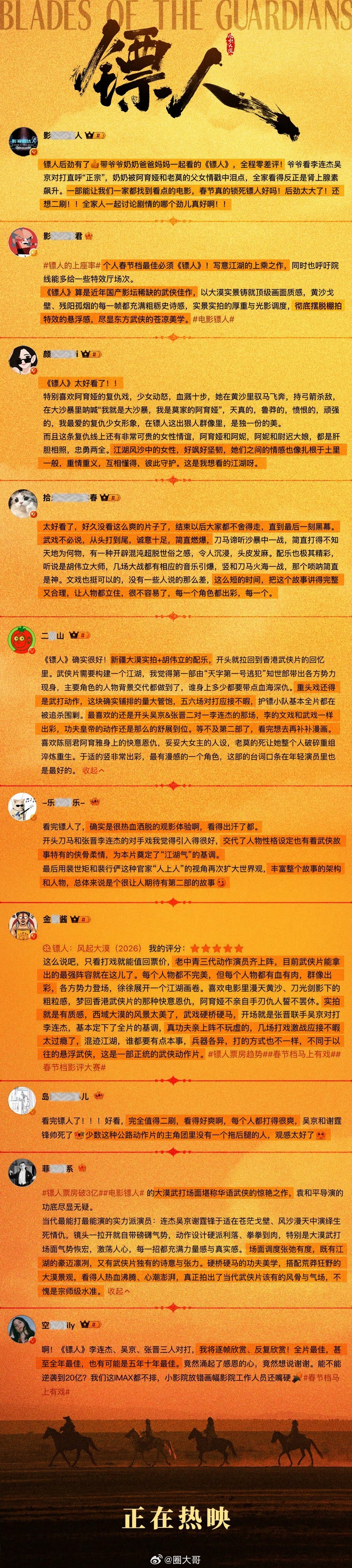 镖人票房逆跌 窝趣!!口碑 翻 盘咱就是说这票房逆 跌太 给国 产武侠长 脸了,