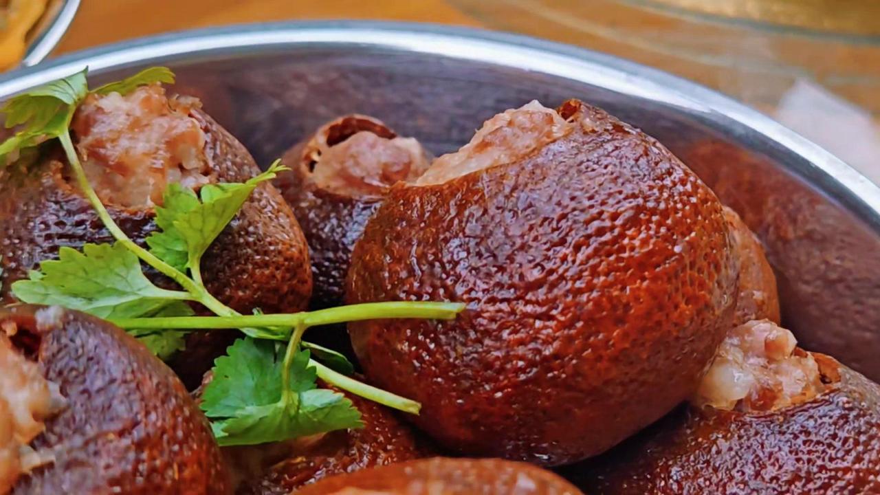 🍊在浦北县平睦镇瓦朝田村的陈皮果农家,吃到了心心念念的陈皮酿! 精选道地药材浦北大红柑果老树陈皮果,不仅果香浓郁,还带着药材的醇厚。把陈皮果剪开,小心剔出果肉,装入提前调制好的肉馅,再经过精心烹饪加工,就成了这道既美味又营养的陈皮酿。 陈皮的清香中和了肉馅的油腻,每一口都能尝到果肉的Q弹和肉馅的鲜美,细细咀嚼,还能品出一丝回甘。这不仅是一道菜,更是当地果农用匠心制作的健康美味,对身体也有不错的调理作用呢! 魅力钦州浦北美食 世界长寿之乡,广西浦北县,几乎烹制所有的美食都要放陈皮做调理。浦北陈皮系列美食也是令人垂涎欲滴的。