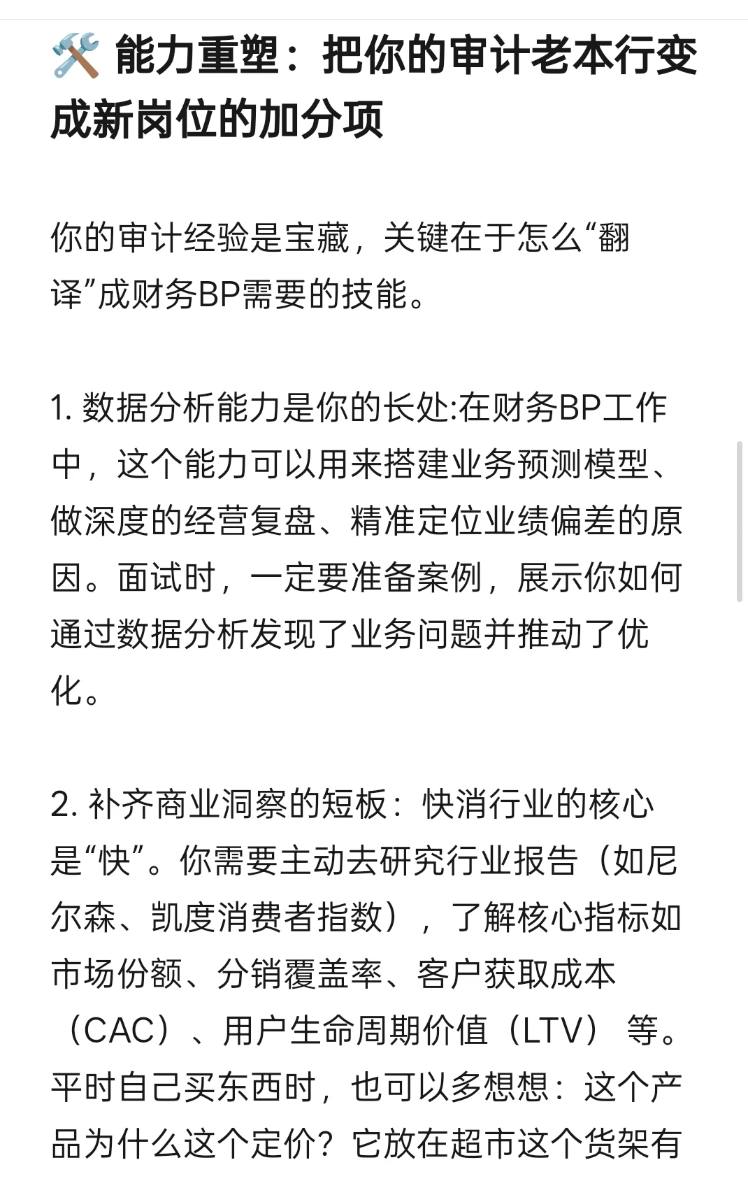 你的审计经验是宝藏,关键在于怎么“翻译”成财务BP需要的技能。